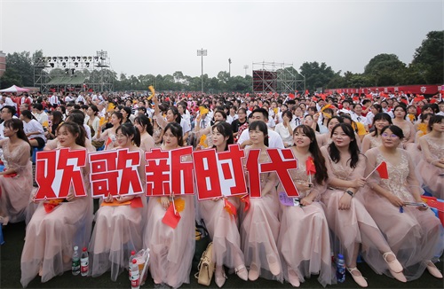 【本网讯】放歌伟大新时代,唱支山歌给党听。6月26日晚,学校庆祝中国共产党成立100周年师生合唱比赛暨2020年度“青春榜样”颁奖典礼在航空港校区第一田径场举行。本次活动由中共乐动在线登录委员会主办、学校党委组织部、党委宣传部、党委学生工作部、工会、团委承办。学校党委书记周激流,校长余敏明,党委副书记马洪江,省纪委监委驻校纪检监察组组长、校党委副书记、纪委书记雷超,副校长于世祥、何建新、范广洲、舒红平、朱明,党委常委、党委组织部部长、统战部部长熊建,全体中层干部、辅导员、2020年度青春榜样获得者以及22支合唱代表队等师生参加了活动。