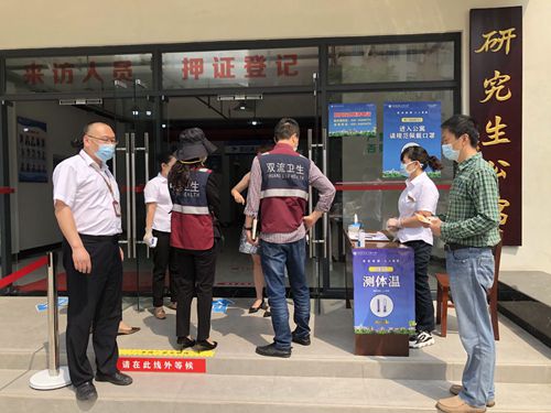 评估专家组分七组在校园内进行了实地检查,先后走访检查了航空港校区南大门入校检测点、学生食堂、校医院、学生21栋公寓健康观察区等重点场所,全面深入了解学校疫情防控和各项复学准备工作落实情况,并有针对性地进行现场指导。