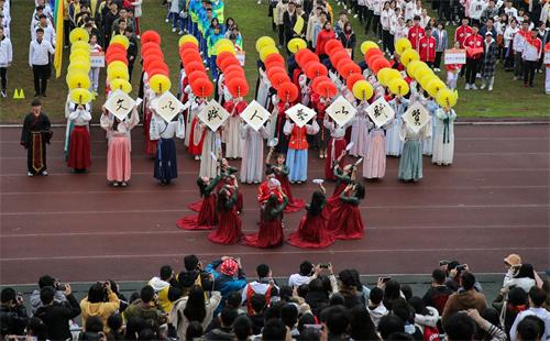 入场式在慷慨激昂的进行曲中拉开序幕。各个学院及教工方队的运动员们朝气蓬勃、整齐如一,充分彰显了成信人团结自强、拼搏向上的精神风貌。入场式上各学院展示了精心编排的节目。