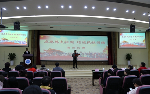 马洪江代表学校对五所高校的参会领导、老师和同学们表示热烈欢迎。他谈到,新中国成立70年以来,中华民族发生了翻天覆地的历史性巨变,形成了各民族共同团结奋斗、共同繁荣发展的良好局面。我们要深入学习贯彻习近平总书记关于民族团结的重要讲话精神,高举中华民族团结的伟大旗帜,不断铸牢中华民族共同体意识,各民族师生要手挽手,肩并肩,像石榴籽一样紧紧拥抱在一起,共创美好明天。此次演讲比赛将进一步促进乐动民族团结进工作的发展,营造出了民族团结一家亲的良好氛围。