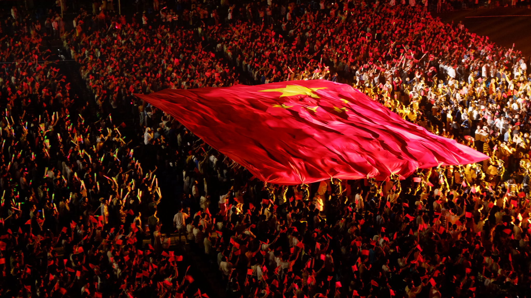 20米长的五星红旗在万人间传递将晚会推向了最高潮,全体师生共唱《我和我的祖国》,祝福伟大的祖国繁荣昌盛,祝愿成信人携手并进,再谱华章。师生们热情地挥动手中的国旗,共庆新中国70华诞,晚会在《歌唱祖国》中圆满结束。
