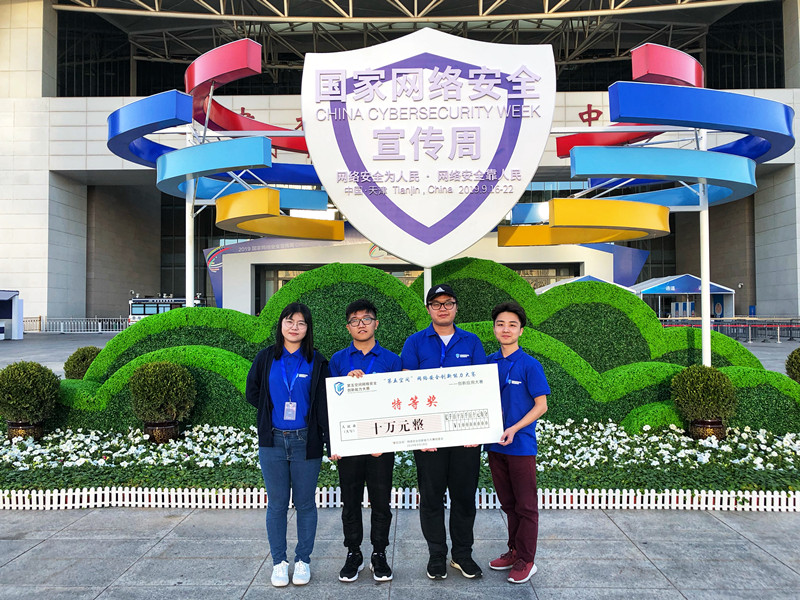 【本网讯】作为2019年国家网络安全宣传周重要活动之一,由天津市委网信办、中国网络空间安全协会、滨海新区政府主办,南开大学、天津大学、天津理工大学承办的第五空间网络安全创新能力大赛决赛9月18日在天津梅江会展中心举行。乐动网络空间安全学院 “道格安全小组”成员彭玉轩、康浩荣、曾春浩、周晓燕四名同学组成的参赛队伍取得“创新应用大赛”全国总决赛特等奖,奖金10万元。