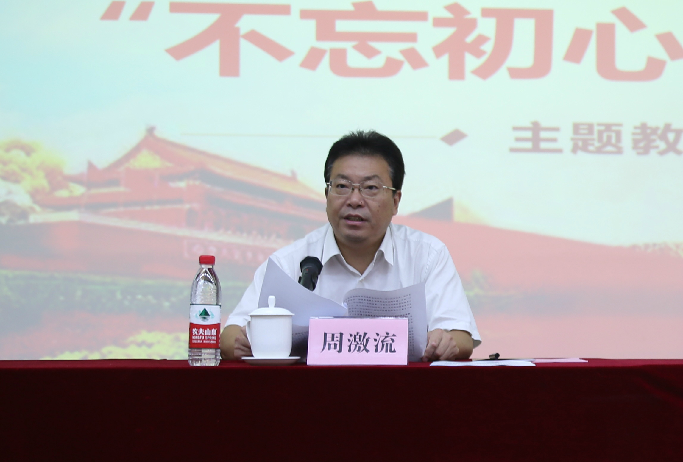 周激流书记说,开展“不忘初心、牢记使命”主题教育,既是实现百年奋斗目标的战略之举,也是加快学校高质量内涵发展,实现学校奋斗目标的内在需要。学校广大党员要全面把握“守初心、担使命,找差距、抓落实”的总要求,准确把握“理论学习有收获、思想政治受洗礼、干事创业敢担当、为民服务解难题、清正廉洁作表率”的具体目标,结合学校(学院)实际,学用结合,以学促行,狠抓落实,注重实效,确保主题教育取得预期效果。他强调,要强化责任落实,加强督促指导,注重宣传引导,防止形式主义,要以过硬作风保证主题教育质量,把主题教育激发出来的工作热情和奋斗精神,转化为推动学校高质量内涵发展的实际行动。