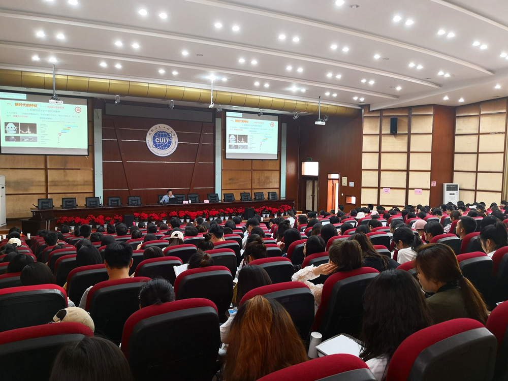 周激流以《中国特色社会主义进入新时代》为题,围绕新时代的特征、习近平新时代中国特色社会主义思想、中国梦三个方面展开。他从国家科技、经济发展、国防建设、国家形象等各领域取得的突出成就入手,深入分析了新时代的特征。尤其是他谈到的我国在新能源、量子信息技术、超算、区块链技术、新一代通信技术、高铁、北斗卫星导航系统、“一带一路”等方面的成就与进展,引起了师生们的共鸣与赞叹。他说,习近平新时代中国特色社会主义思想是一脉相承的马克思主义中国化理论,并从“八个明确”的角度,和师生们一起分享了习近平新时代中国特色社会主义思想的重要内涵。
