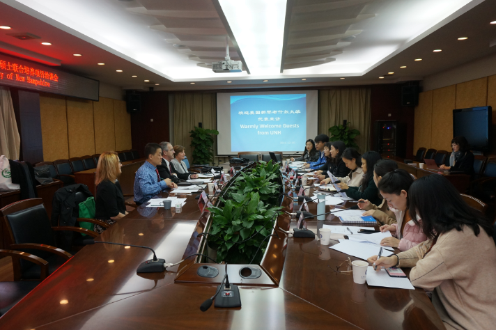 【本网讯】12月5日上午,乐动与美国新罕布什尔大学(University of New Hampshire)博士合作项目、分析学硕士联合培养项目洽谈会在行政楼第七会议室举行。新罕布什尔大学副校长Wayne Jones、健康与人类服务学院学前中心主任Lisa Ranfos、人文学院院长Michele Dillon、孔子学院院长Yige Wang,乐动国际交流与合作处处长何嘉、研究生处副处长唐婷婷、相关学院负责人及教师参加了会议。