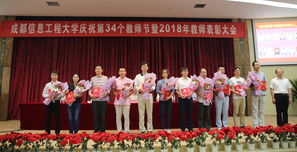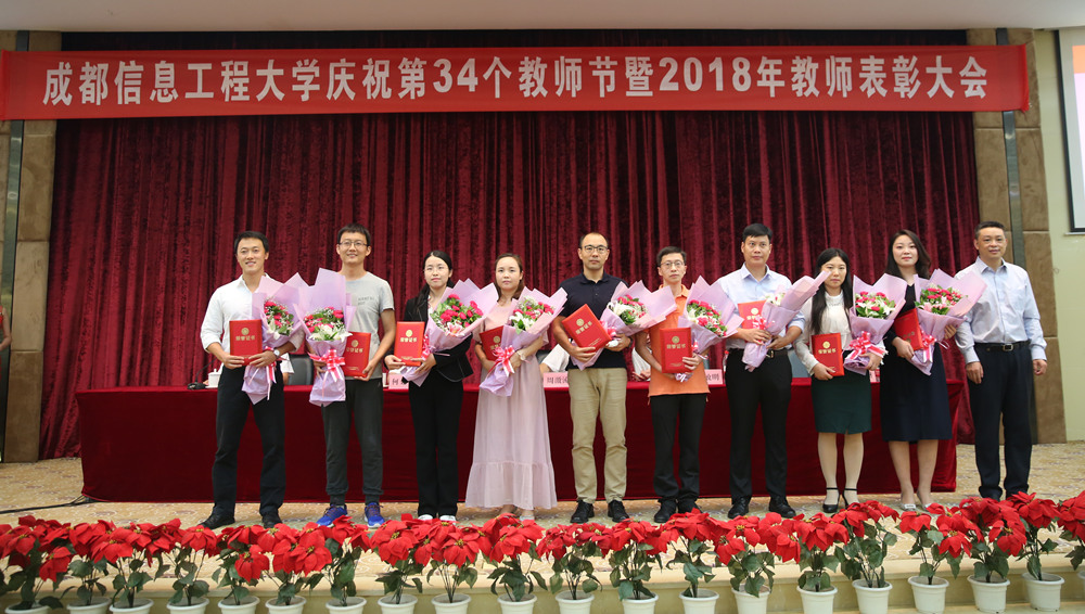 余敏明宣读了表彰文件:李国平获得“全国气象教学名师”荣誉称号、黄萍获得“四川省优秀教师”荣誉称号、王式功等4名教师入选“四川省学术和技术带头人”、吴震等5名教师入选“四川省有突出贡献的优秀专家”、李贺等3名教师入选四川省人才引进计划、14个教学团队获得省级教学成果获奖、王永前等20名教师入选“四川省学术和技术带头人后备人选”、陈科艺等10名教师获得第五届“青年教师教学奖”、胡茶根等18名教师分获学校第九届青年教师教学竞赛一、二、三等奖。