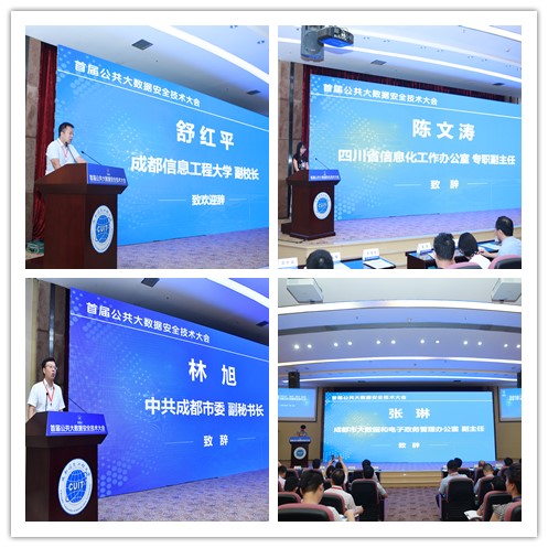 开幕式上,学校副校长舒红平致欢迎词,并介绍了学校在网络安全和大数据安全方面的学科特色与优势。四川省信息化工作办公室专职副主任陈文涛、中共成都市委副秘书长林旭、成都市大数据和电子政务管理办公室副主任张琳先后致辞,他们表示大数据技术正悄然渗透到各行各业,是促进企业发展、政府管理和社会变革的重要力量,当前,大数据安全技术已引起学术界和业界的广泛关注,加快我国大数据安全保障体系建设,提升国家重点行业大数据安全防护水平,是加快建设数字中国的基石。