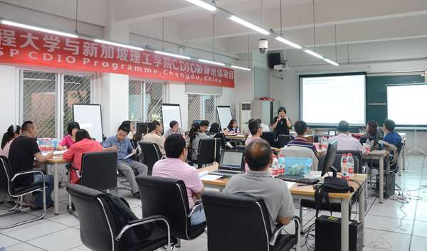 【本网讯】6月11日至13日,学校与新加坡理工学院联合开展的CDIO教师培训项目进入第三阶段——资深导师培训阶段。经新加坡理工学院与学校协商,遴选确定26名校内外教师继续项目深造。新加坡理工学院的2位外籍专家到校进行培训指导,来自电子科技大学成都学院、成都东软学院和乐动的教师参加了本期培训。培训工作由学校教师教学发展与评估中心和国际交流与合作处联合组织。