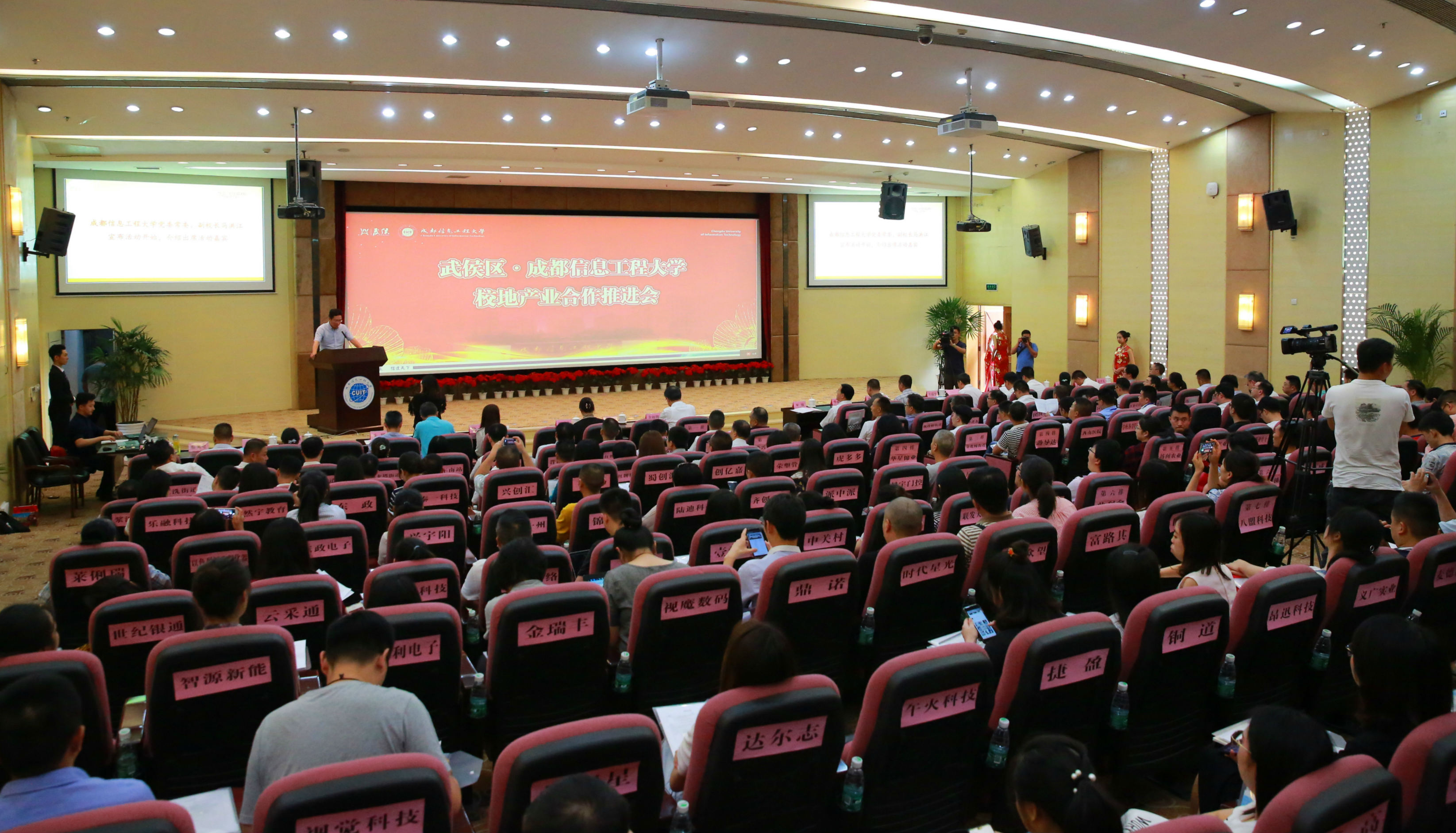 武侯区委统战部、武侯新城管委会、成都京东、四川广宏科技等部门和企业分别与学校宣传统战部、物流学院、电子工程学院在推进会现场交换了合作协议文本。