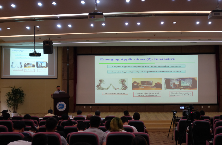 许志杰作题为“History and Emerging Trends in Visual Computing”的报告。他分享了视觉计算的历史、发展趋向和其现实意义。他说,该技术被广泛应用于手机APP中,如抖音、王者荣耀等,运用此技术可有效增加用户体验度。