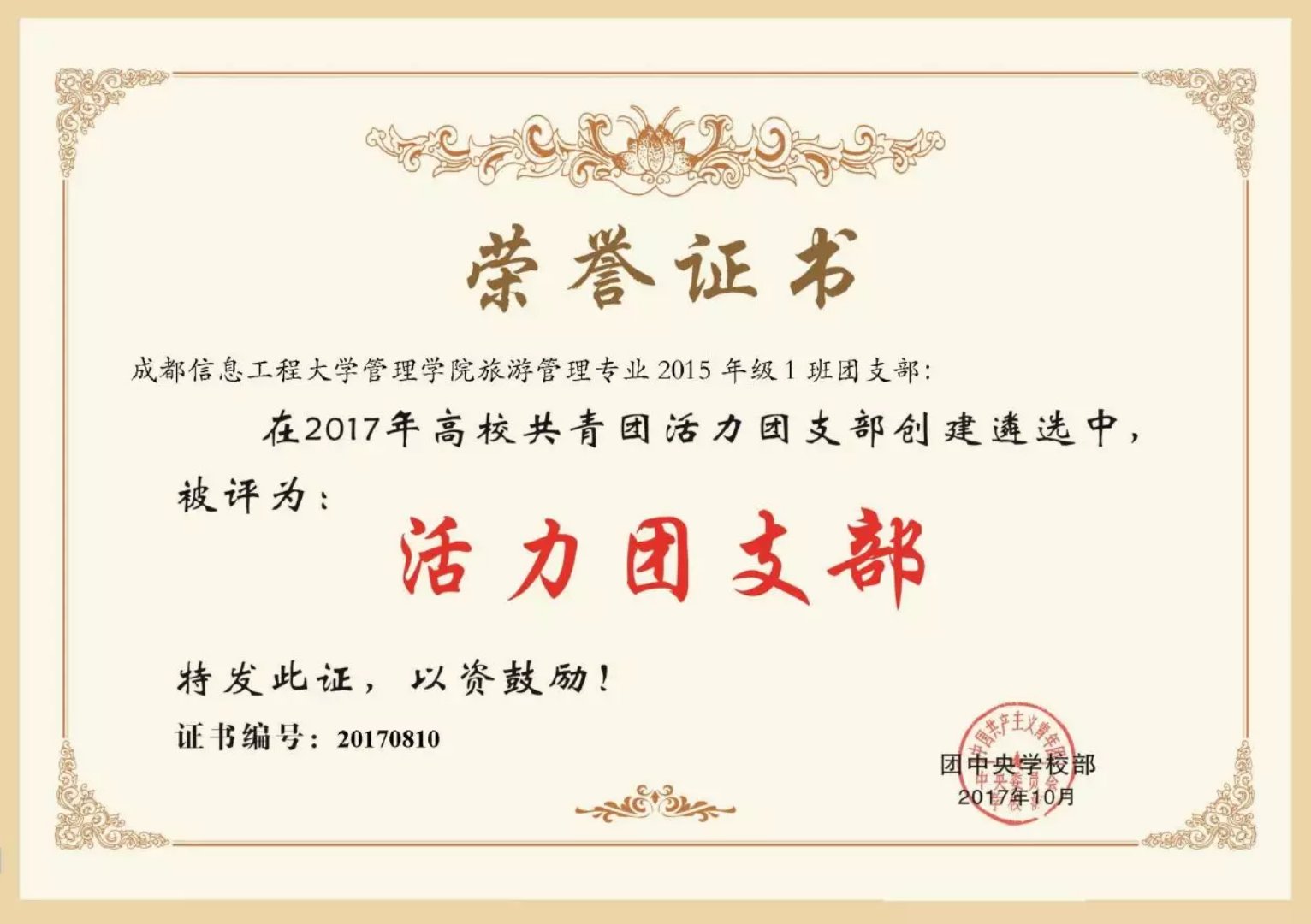 【本网讯】为贯彻落实《高校共青团改革实施方案》有关精神,深入实施高校基层团支部“活力提升”工程,团中央学校部于2017年秋季学期开展高校“活力团支部”创建遴选活动。经校内创建、省级遴选、网络投票等环节,乐动管理学院旅游管理2015级1班团支部获评2017年全国高校“活力团支部”。
