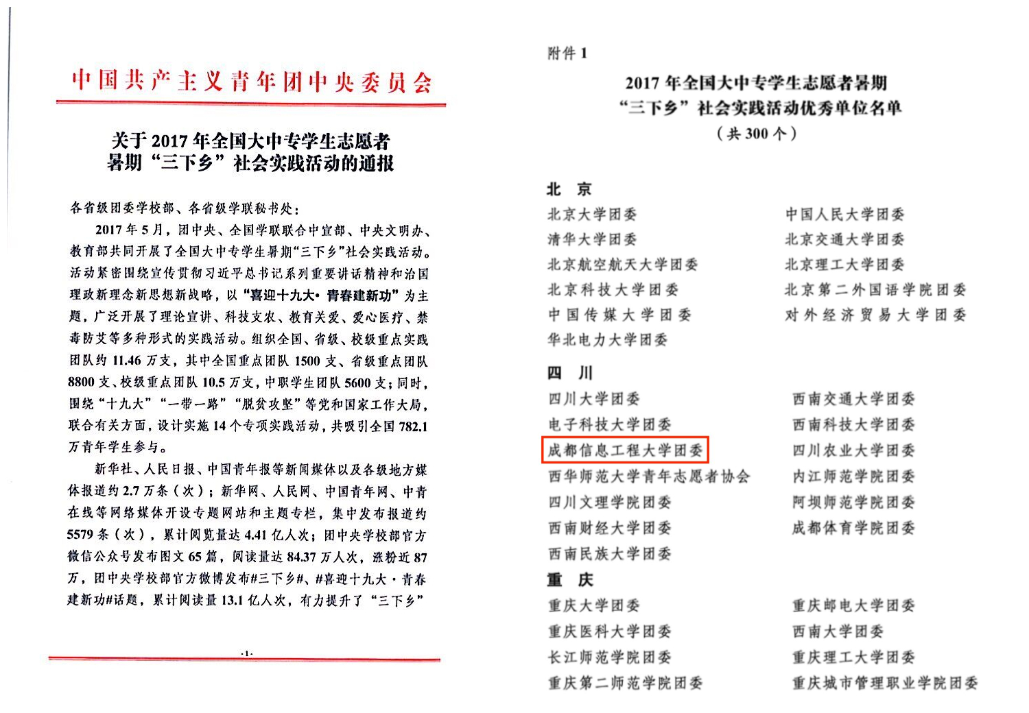 【本网讯】近日,共青团中央、中华全国学联对在2017年全国大中专学生志愿者暑期“三下乡”社会实践活动中表现突出的集体和个人予以通报表彰。由于在暑期社会实践工作组织得力、成效显著,乐动团委被授予全国暑期社会实践活动“优秀单位”称号,学校青春建功实践服务队被授予“优秀团队”称号。