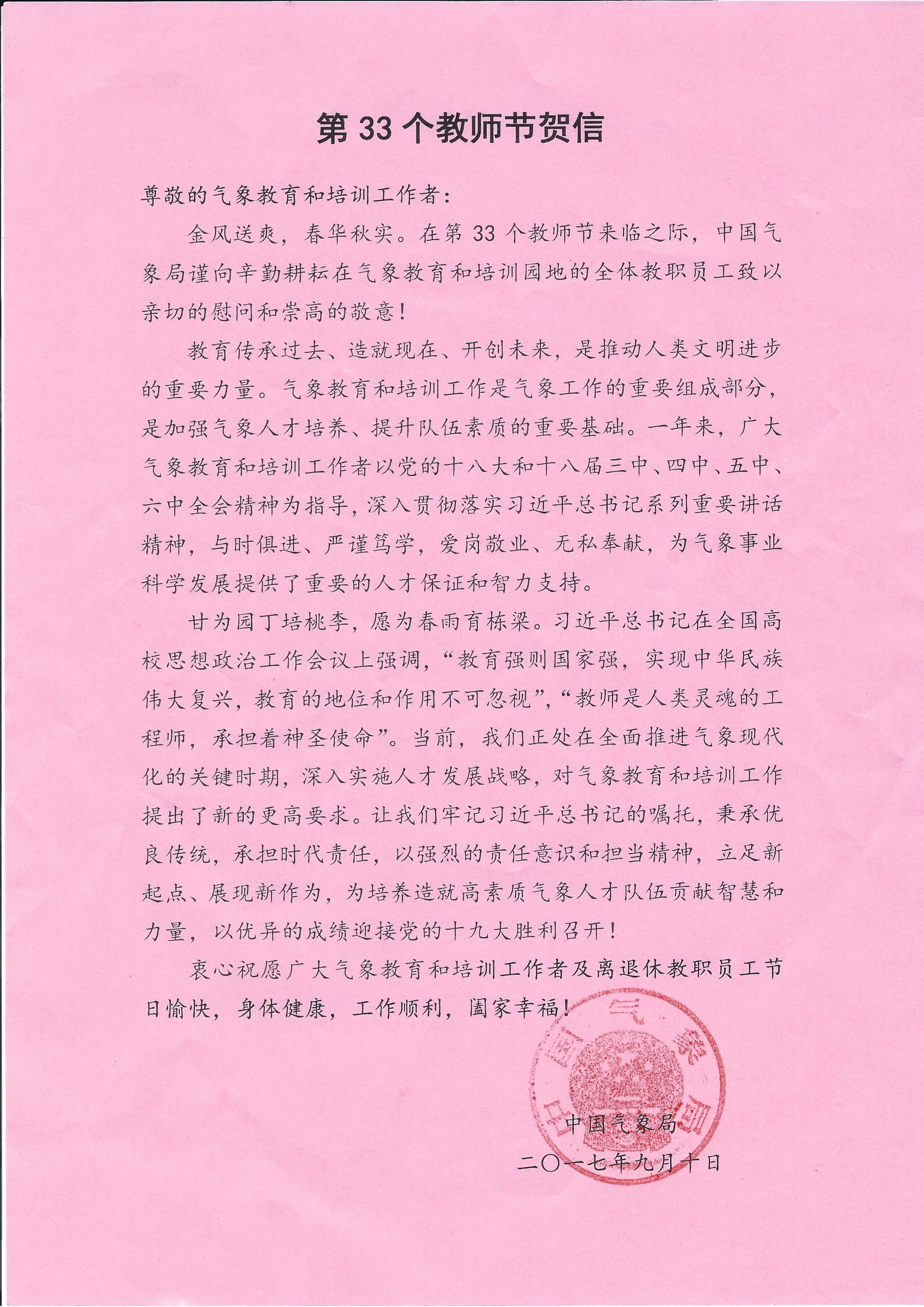 上一条:四川省气象局向乐动教师发来教师节慰问信