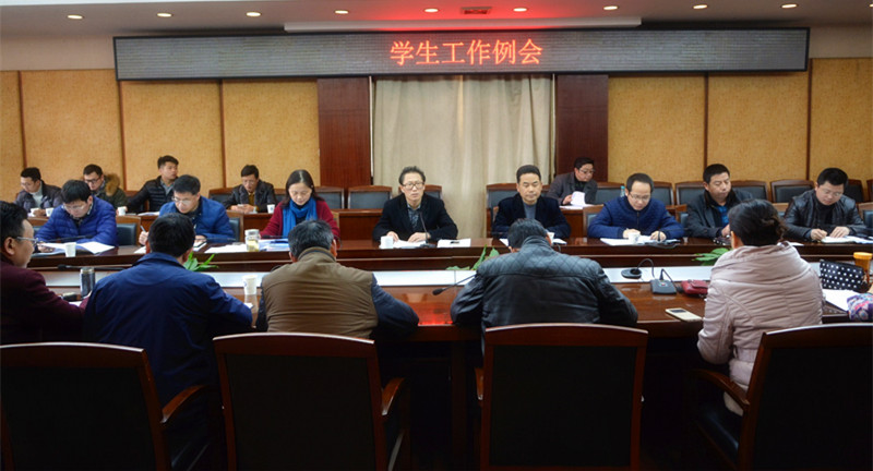【本网讯】3月16日下午,学校在行政楼第七会议室召开新学期学生工作例会。学校副校长于世祥,火箭军驻校选培办、学生工作处、保卫处、校团委负责人,各学院党总支书记、副书记,学工办主任、副主任,学生工作处相关人员参加了会议。会议由于世祥主持。