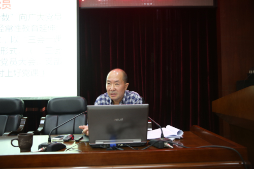退休教师胡光辉作题为《响应党中央全面从严治党号召,强化“三会一课”制度,不忘初心继续前进》的专题报告。结合“两学一做”学习教育,胡光辉从自己丰富的历史知识、文学知识、工作经验、人生经历等方面,回答了什么是“三会一课”制度、为什么要坚持“三会一课”制度、怎样强化“三会一课”制度。他强调坚持“三会一课”制度,对于健全党组织生活,严格党员管理,加强党员教育,提高党员素质,增强党组织的凝聚力、吸引力和战斗力,具有重要作用。因此,全体党员都要服从所在党支部的安排,坚持参加“三会一课”,贯彻学习习近平总书记“七一”重要讲话精神,紧密结合工作实际,确保“三会一课”制度有效落实。此次集中培训进一步加强了党支部书记对“两学一做”新常态下,做好党支部工作重要性的认识,增强了做好党支部工作的信心,进一步坚定了爱党爱国爱社会主义的理想信念。