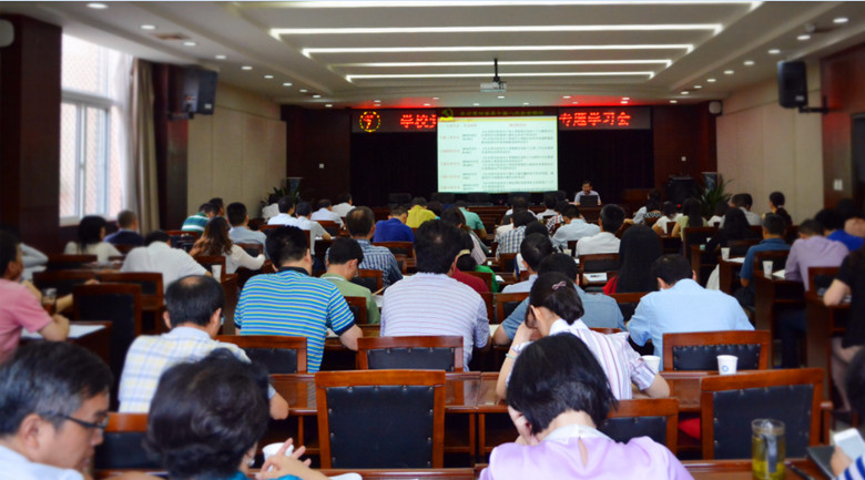 【本网讯】9月2日,学校党委中心(扩大)组在行政楼第一会议室召开深入学习贯彻省委十届八次全会精神的专题学习会。会议特邀四川省委宣讲团高校分团成员、省委党校陈旭教授来校作专题辅导报告。全体处级以上领导干部参加了学习,报告会由学校党委书记赖廷谦主持。