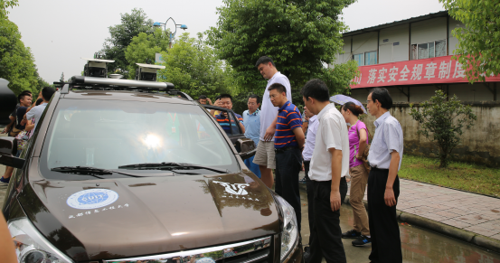 闭幕式结束后,赖廷谦陪同姚明先生参观了乐动大气观测场。随后,乐动控制工程学院蒋涛副院长为姚明先生边讲解边演示最新的科研成果“无人驾驶汽车”项目。
