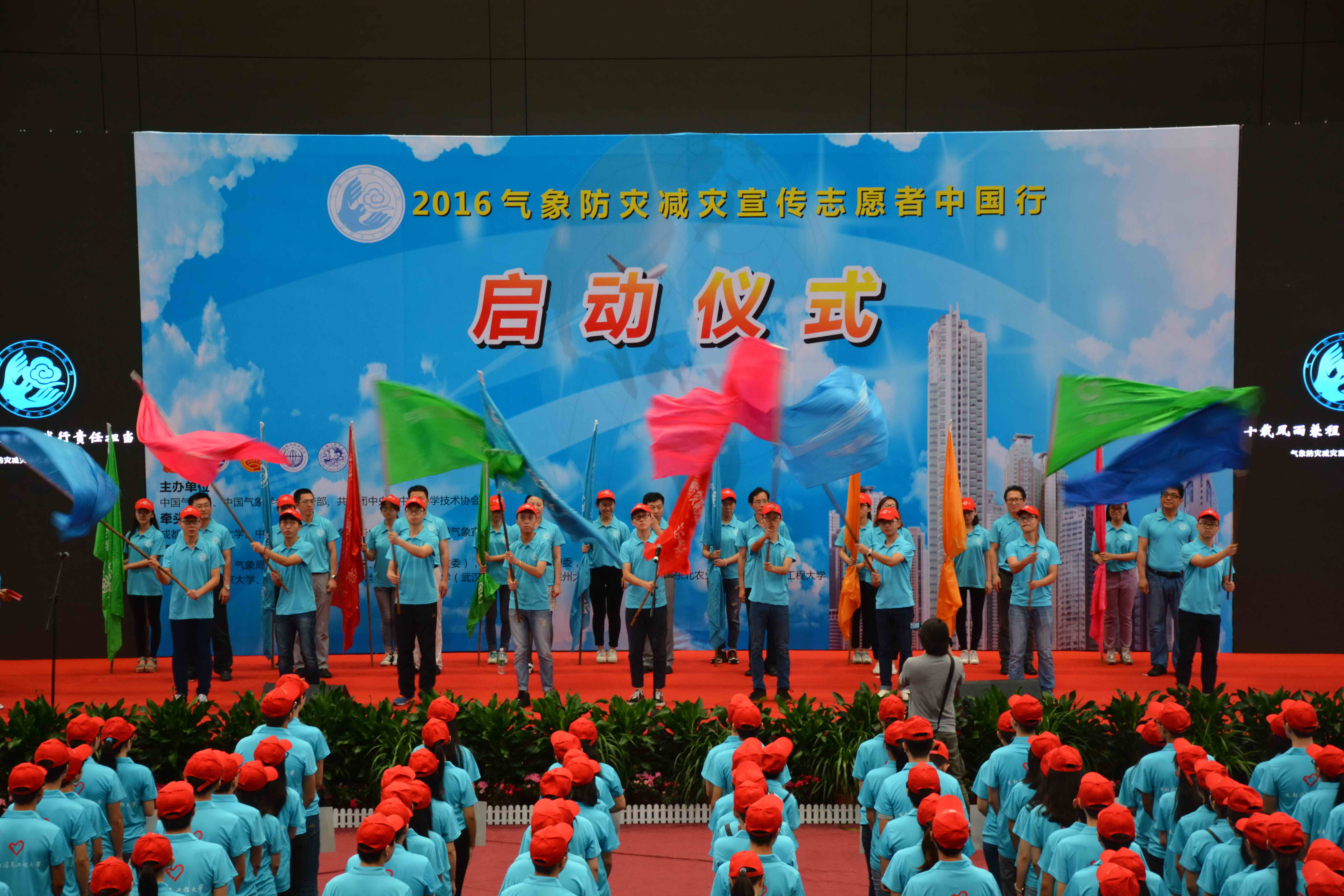 洪兰江宣布“气象防灾减灾宣传志愿者中国行”活动正式启动。启动仪式现场,与会领导向各省志愿者代表授旗,乐动大气探测学院学生刘远志代表志愿者领誓。