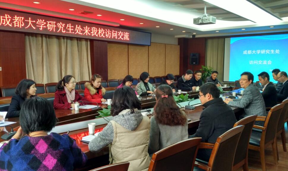 【本网讯】3月15日下午,成都大学研究生处处长陈琳一行来乐动访问交流,交流会议在行政楼第七会议室召开。会议由研究生处副处长陈权亮主持,校长周激流出席并讲话,研究生处副处长何科奇及各科室工作人员参加了会议。