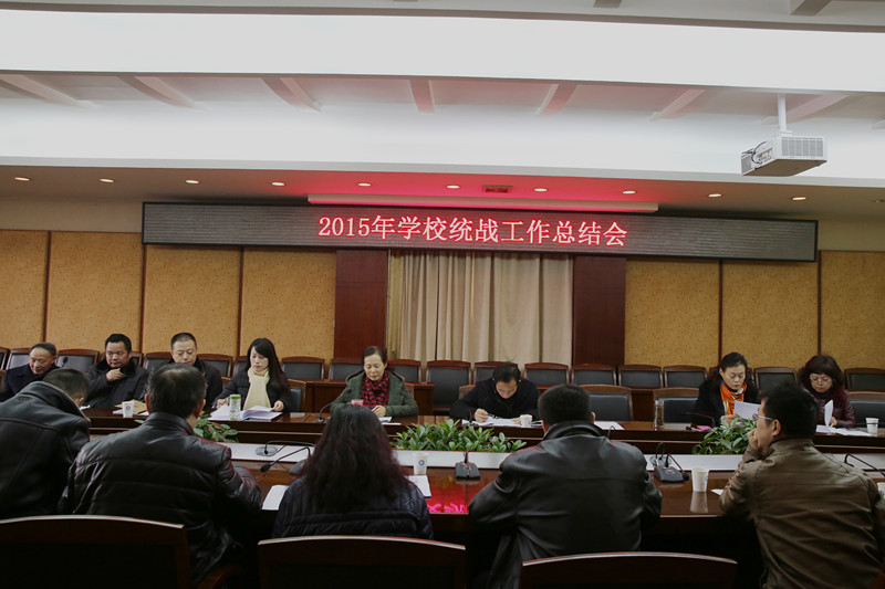 【本网讯】1月5日,学校2015年统战工作总结会在航空港校区第七会议室召开。学校党委书记赖廷谦、副书记敬枫蓉,宣传统战部部长饶华、副部长徐紫电,各民主党派和知联会主要负责人参加了会议。会议由敬枫蓉主持。