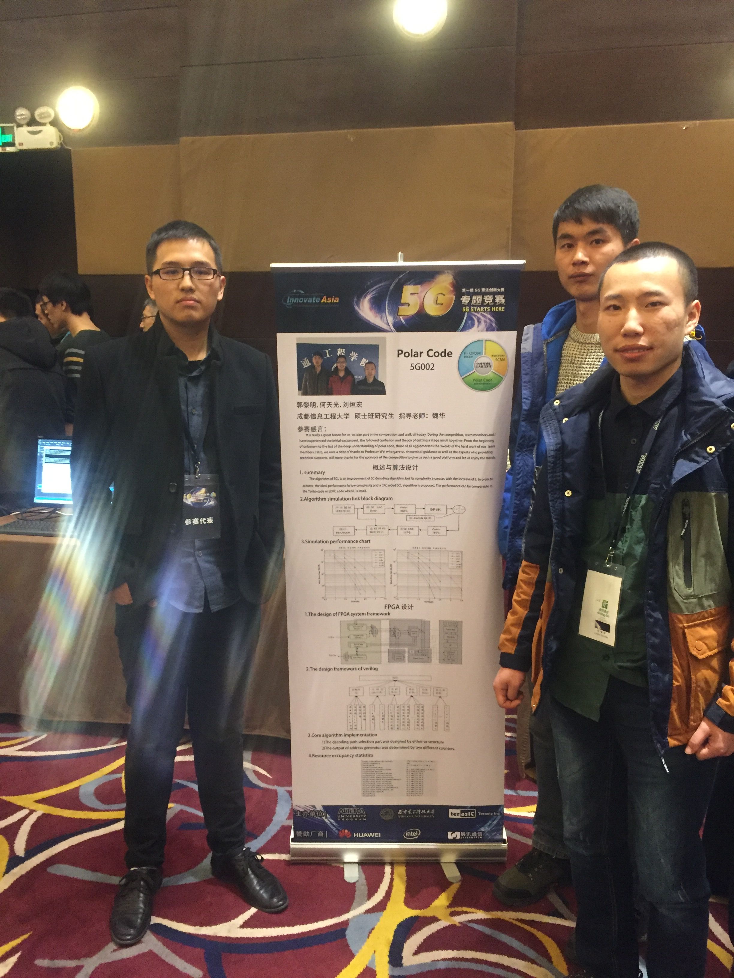 乐动通信工程学院研究生二年级学生何天光,郭黎明,刘烜宏,由魏华博士和李蠡博士任指导老师,并组成团队,选择Polar Code为赛题参与这次大赛。经过七个多月的努力,他们成功进入全国仅有30支队伍入围的决赛(乐动参赛队是唯一一支来自二本院校的团队),并最终取得“优秀算法仿真设计奖”。