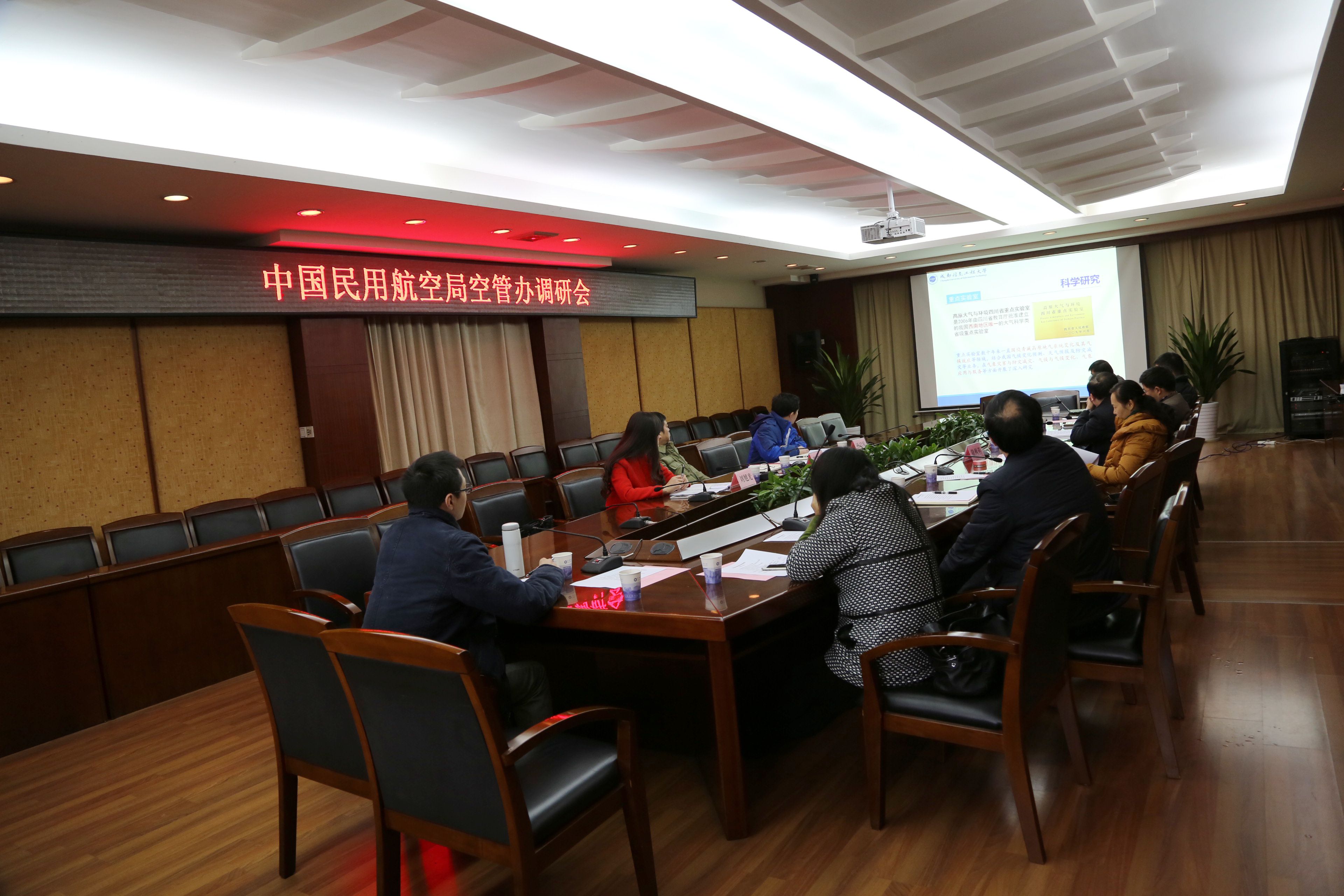 【本网讯】12月21日,中国民用航空局空管行业管理办公室张瑞庆副主任一行来乐动进行调研。学校党委副书记敬枫蓉、副校长何建新,校长助理(软件工程学院院长)舒红平、科技处、大气科学学院、电子工程学院、通信工程学院、资源环境学院、信息安全学院等相关部门领导与张瑞庆一行在第七会议室进行了交流,调研会由何建新副校长主持。