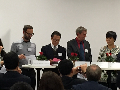 【本网讯】11月12日,“第八届中德应用型高等教育研讨会”在德国下萨克森州奥斯纳布吕市举行,议题聚焦校企协同创新推动区域经济发展。学校副校长于世祥、教务处处长陈敏前往参加会议。国内有十多所地方高校和近十所欧洲应用型高校的代表参加会议。