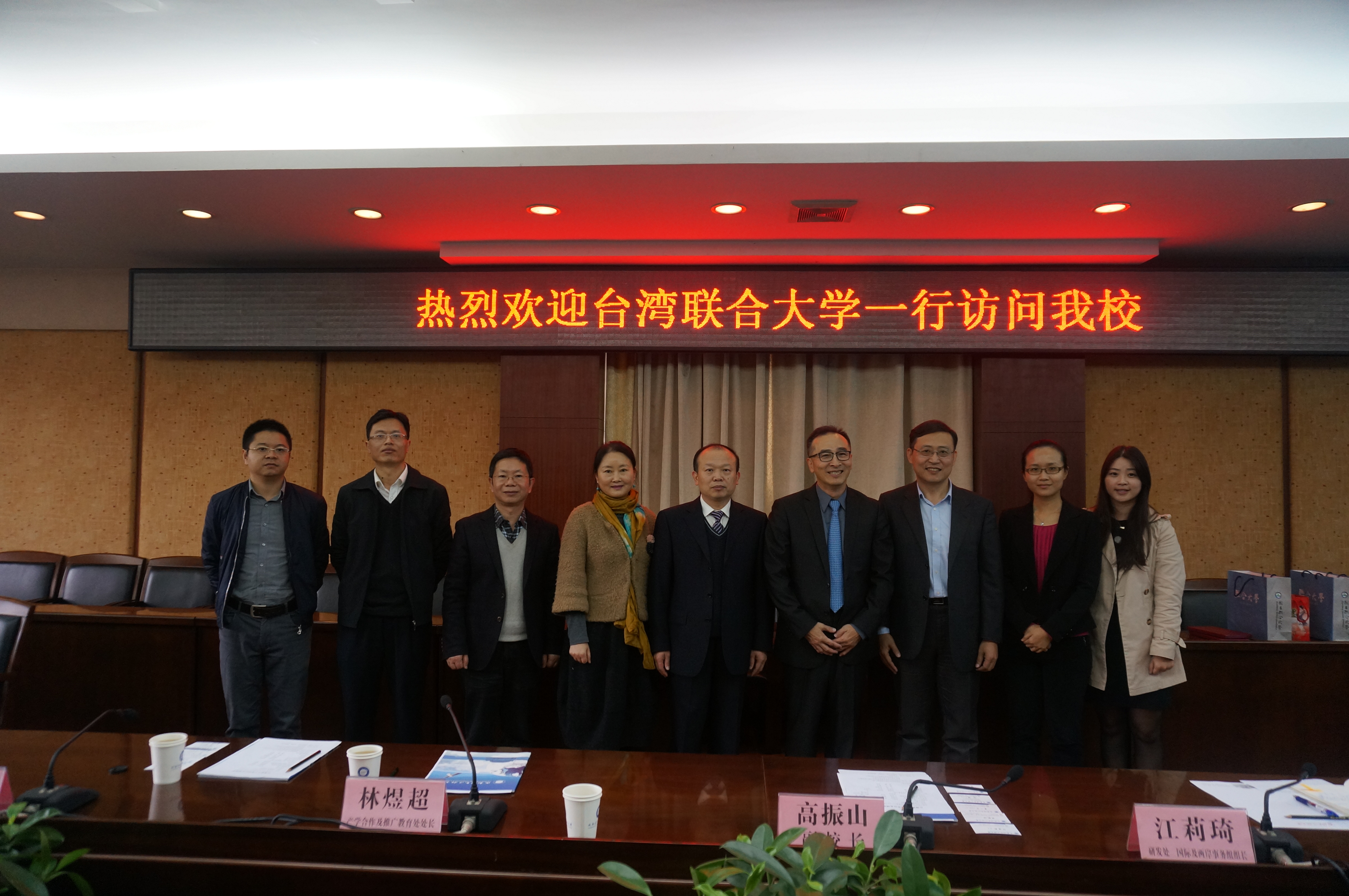 【本网讯】11月17日上午,台湾联合大学副校长高振山、产学合作及推广教育处处长林煜超、研发处国际及两岸事务组组长江莉琦、行政助理陈郁玲一行4人到访乐动。乐动副校长何建新,国际交流与合作处处长段黔冰、科技处处长董一平、校地合作处处长陈麟、教务处副处长何晋等参加了交流座谈会议。