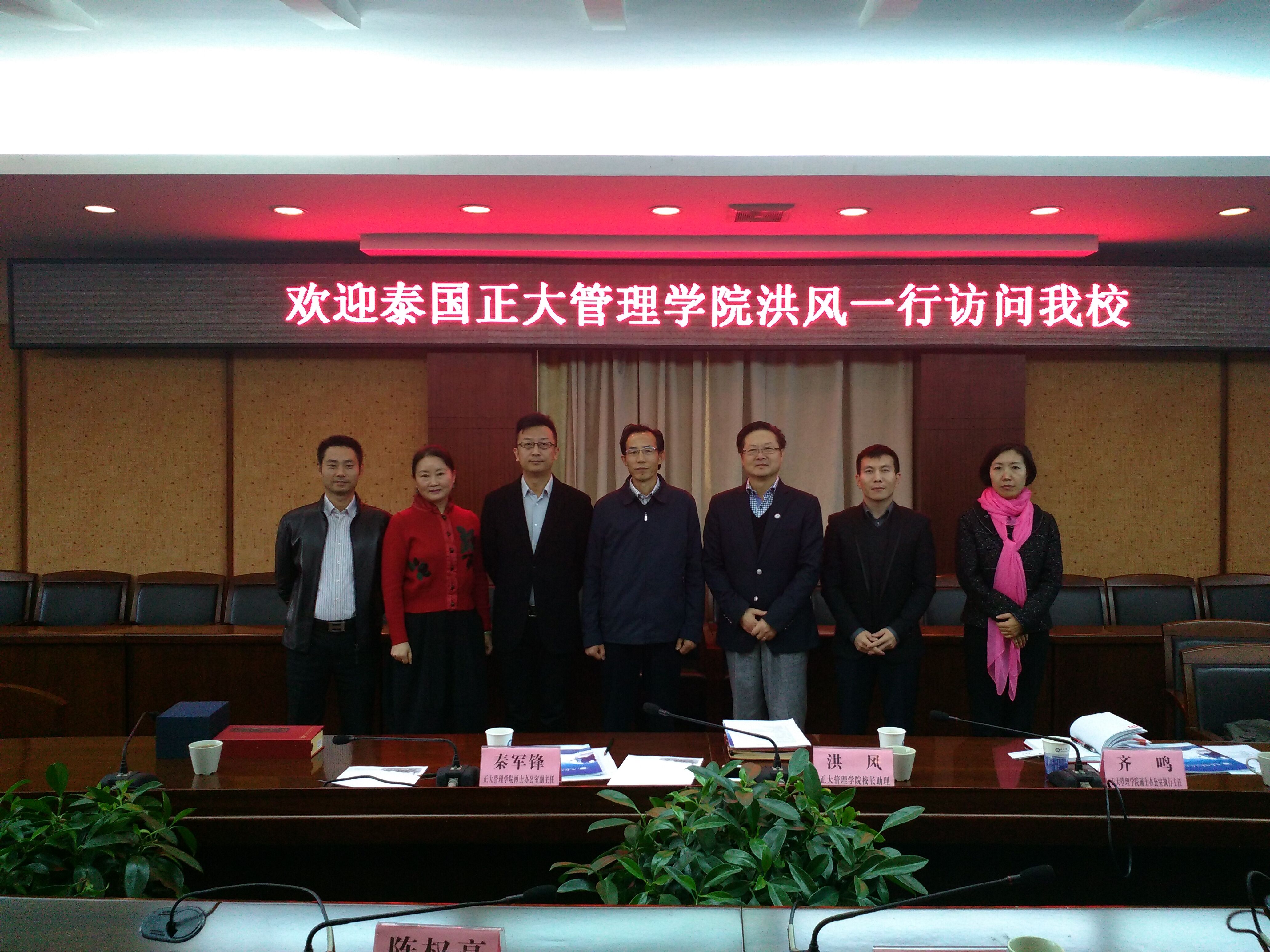 【本网讯】11月18日上午,泰国正大管理学院校长助理洪风、硕士办公室执行主任齐鸣、博士办公室副主任秦军锋一行三人来乐动访问交流。学校党委书记赖廷谦,国际交流与合作处处长段黔冰、研究生处副处长陈权亮、管理学院副院长李贵卿及商学院教师代表鲜红参加了座谈。会议由段黔冰主持。