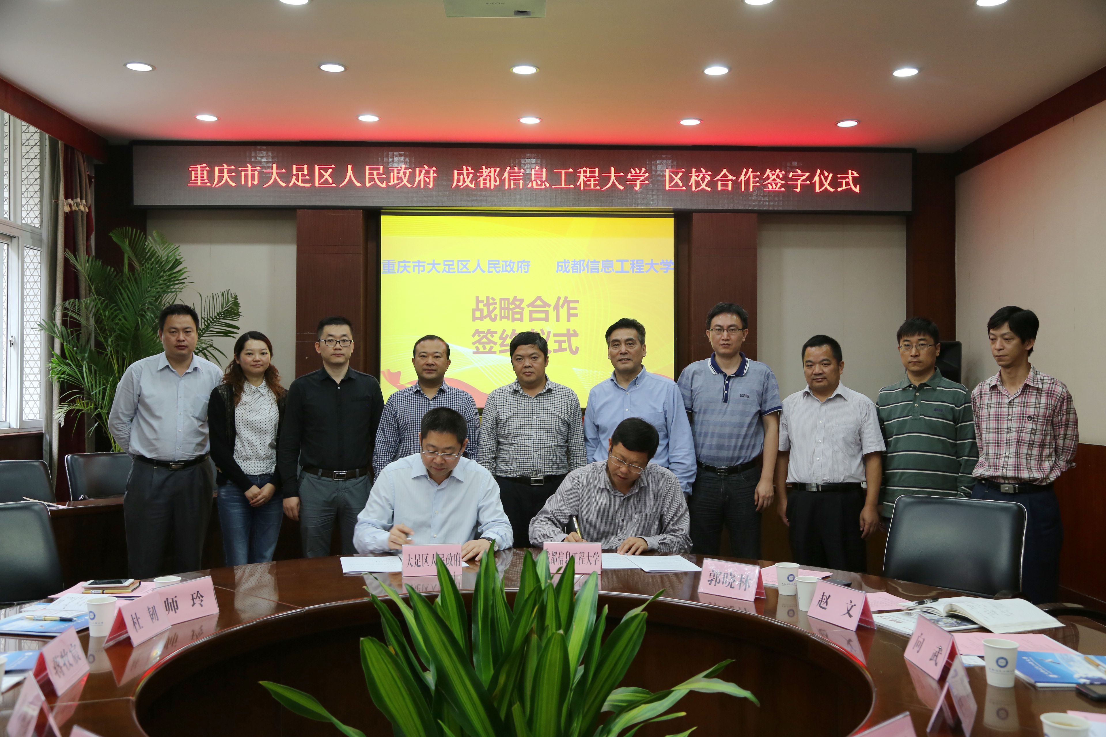 【本网讯】10月16日上午,学校与重庆市大足区人民政府在行政楼六会议室签署了战略合作协议。学校副校长向武,学校科技处、招生就业处、控制工程学院、物流学院、成信资产经营有限公司,重庆市大足区区委常委、区委办主任、万古工业园区党工委书记、管委会主任蒋牧宸,区政府法制办、区科委、万古工业园区、万古镇相关负责人等参加了签约仪式。签约仪式由乐动控制工程学院院长巨辉主持。