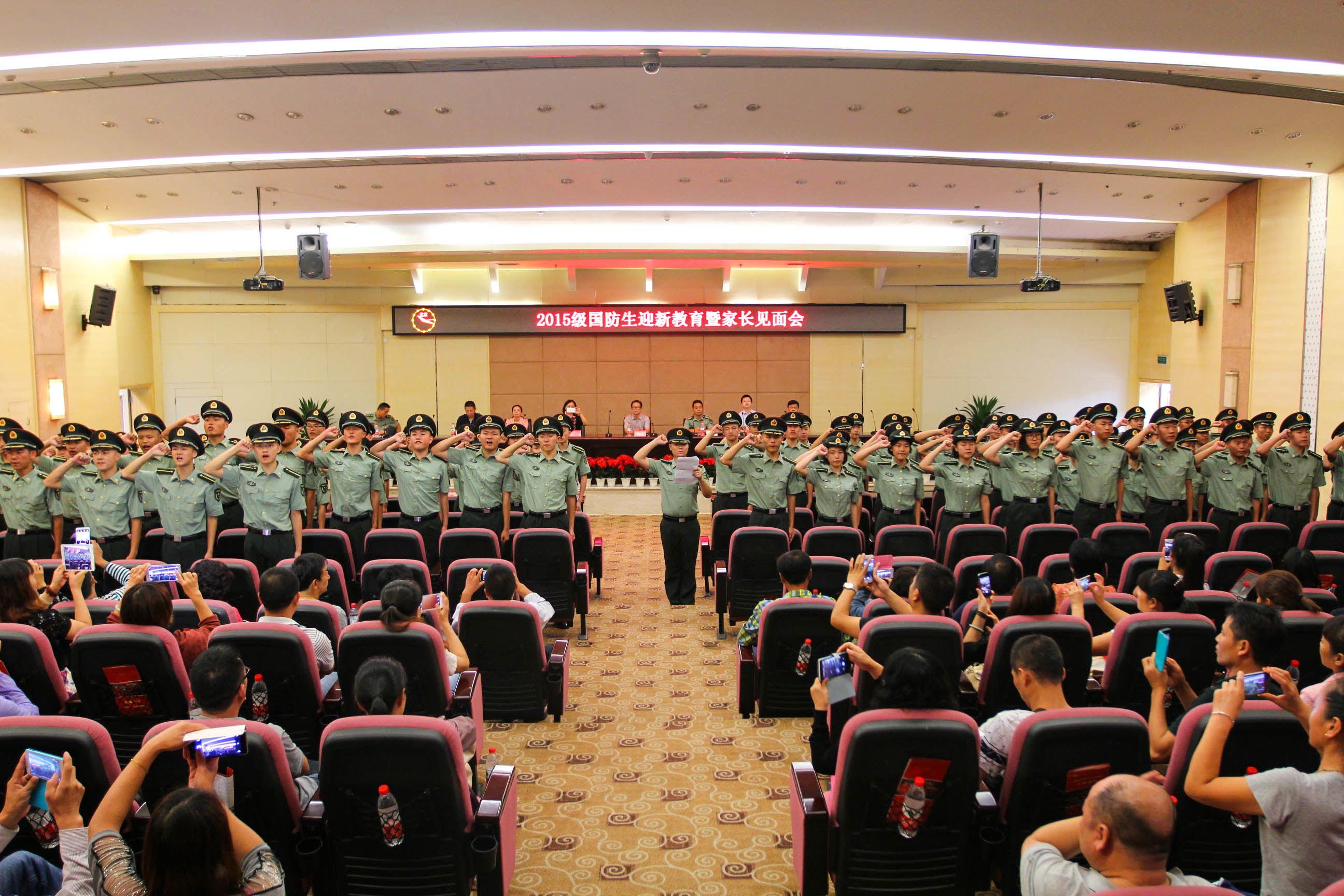 “我为我今天的选择而骄傲,我为我明天的事业而自豪,我必将坚定从军信念,献身强军实践……”9月10日,学校在国际会议厅召开了乐动在线登录2015级国防生迎新教育暨家长见面会。学校副校长于世祥,驻校选培办王主任,学生工作处处长戴丽红、副处长陈智勇,大气科学学院党总支副书记缪燕平、资源环境学院党总支书记刘绍全、信息安全工程学院党总支书记许鸿涛,驻校选培办干事,学生工作处老师,全体2015级国防生新生及部分高年级国防生参加了会议。