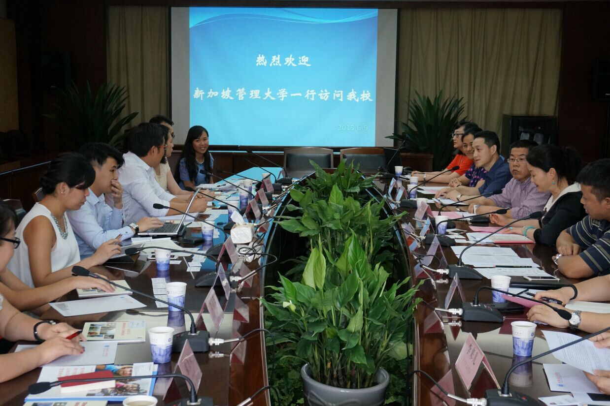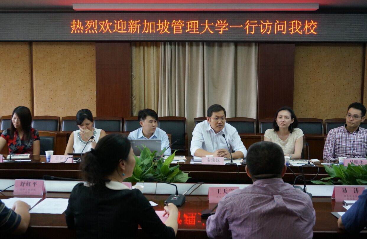 【本网讯】6月9日下午,新加坡管理大学及新加坡国际企业发展局一行8位代表来乐动交流访问。座谈会在第七会议室举行,招生就业处副处长易涛、软件学院院长舒红平、通信工程学院院长王天宝、信息安全工程学院院长李飞、商学院副院长李来儿、计算机学院教研室主任汤蓉参加此次座谈,座谈会由国际交流与合作处处长段黔冰主持。