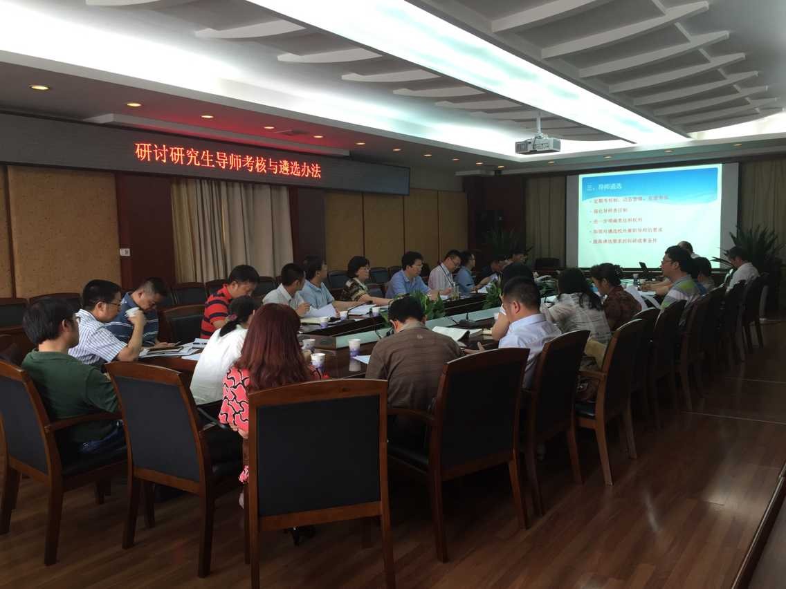 会议听取了研究生处副处长何科奇关于制定导师全面考核的细则和修订导师遴选办法的情况汇报。