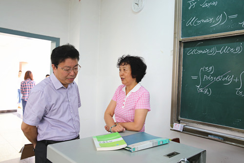 课堂上,周激流全神贯注地听周老师讲解高数知识,对课堂教学纪律、教学情况、教学效果以及教师教学水平等进行了全面地了解,还不时做着听课笔记,记录听课情况,并对教师教学方法提出了很好的建议。下课后,周激流特意走到讲台前,与周庆新教师进行交流与探讨,仔细询问课程教学设计、课堂教学环节等问题,并了解老师对学院教学工作的意见和建议。