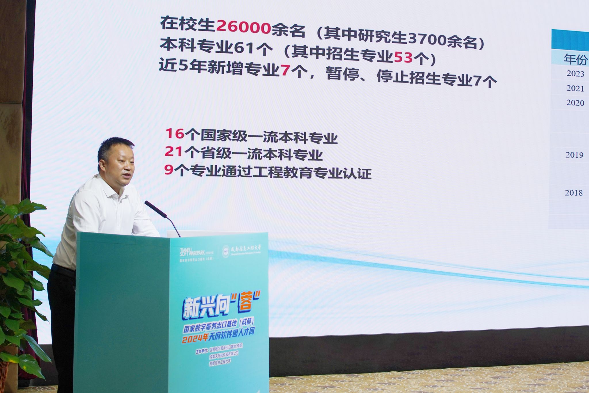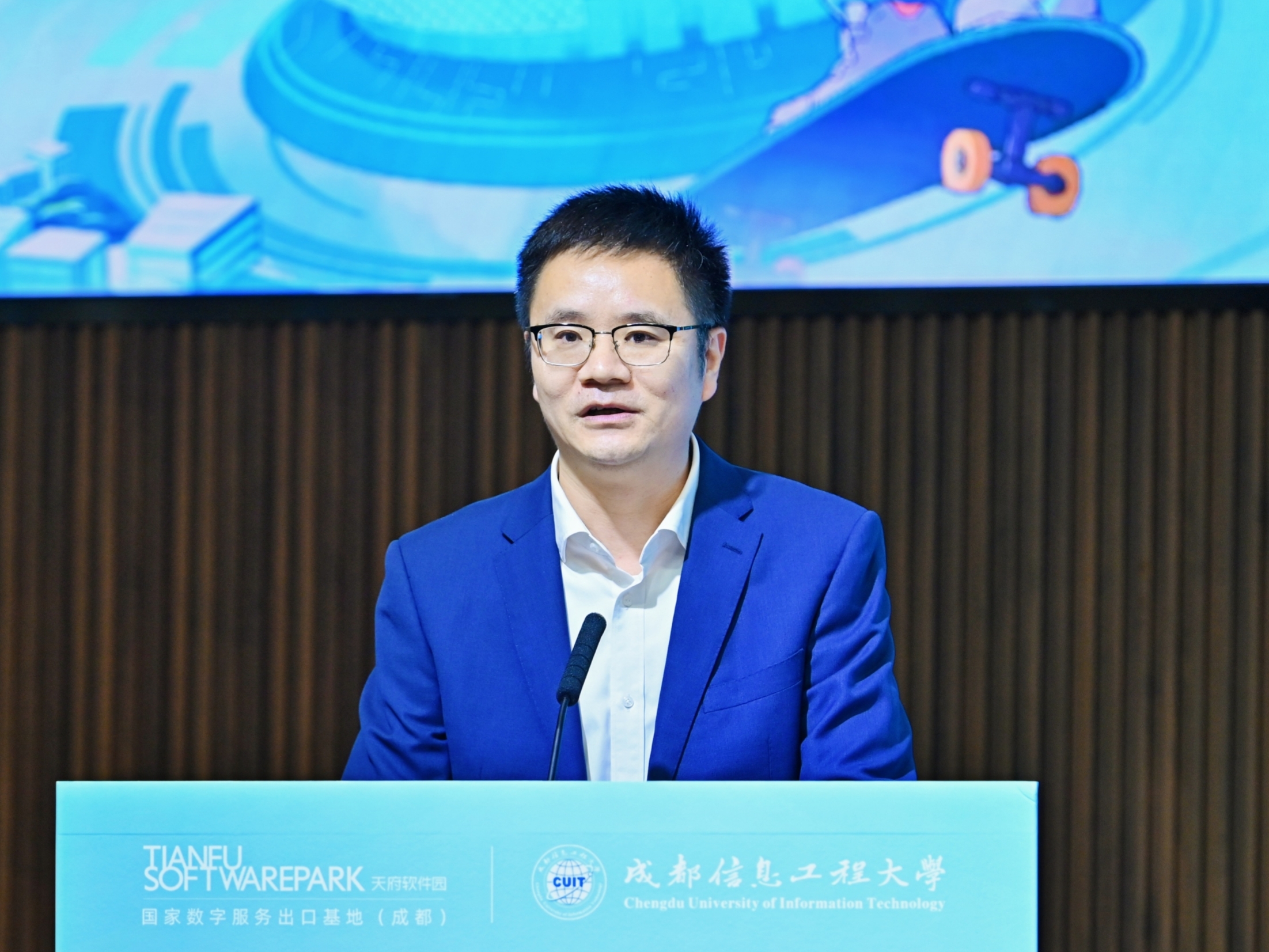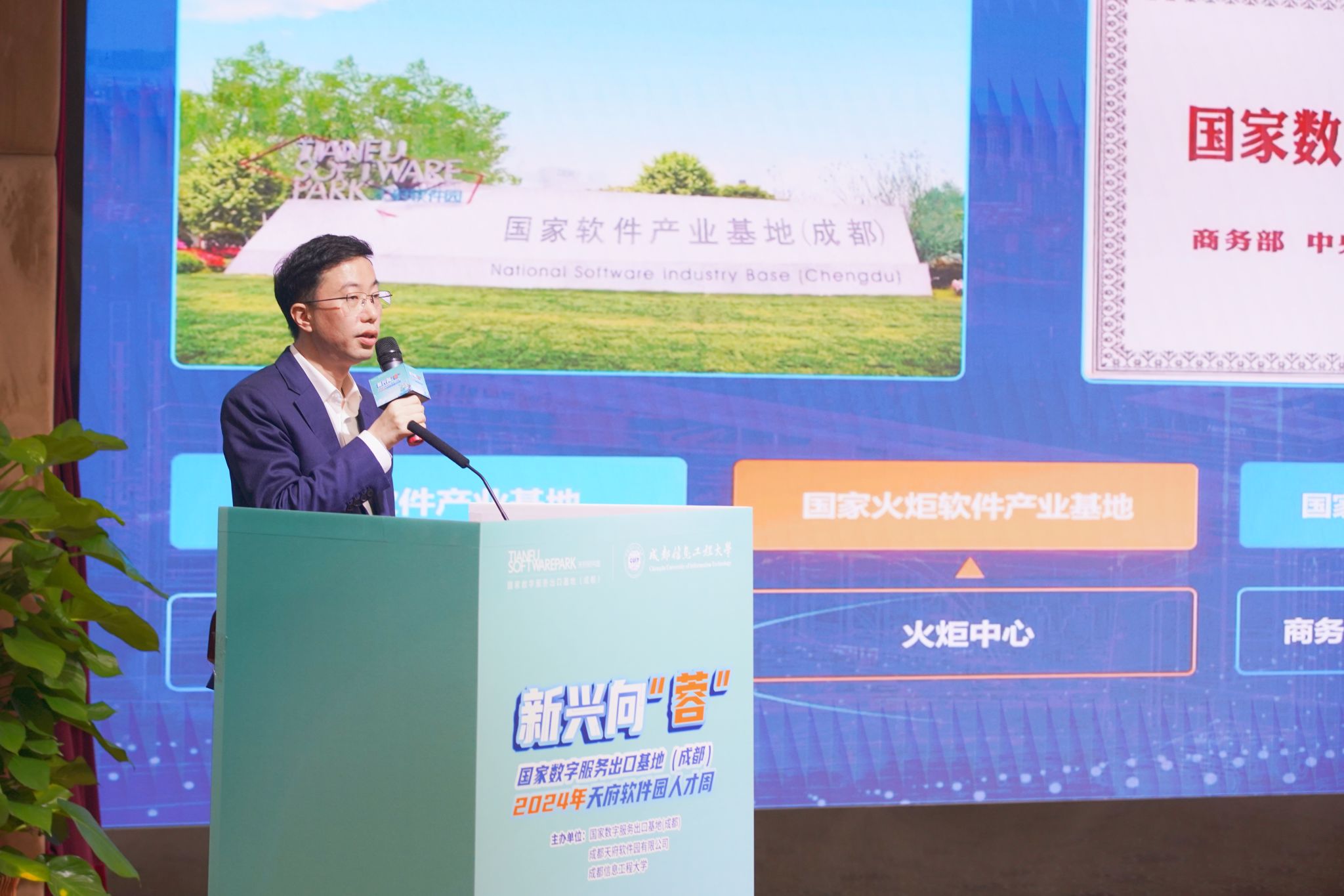何建新代表学校对各位领导嘉宾的到来表示欢迎。他谈到,近年来,学校与天府软件园在科研攻关、学生就业方面开展了广泛合作,期待双方开展更加深入广泛的交流合作,推进“教育、科技、人才”一体化战略部署,进一步构建科研联合攻关、人才联合培养、毕业生就业实习、资源成果共享的全面合作格局,为行业及地方经济社会发展做出更大贡献。