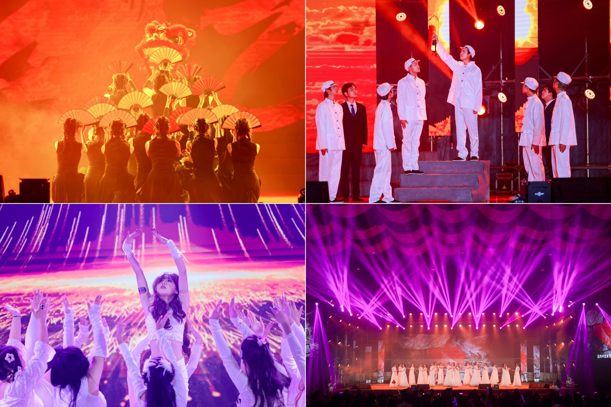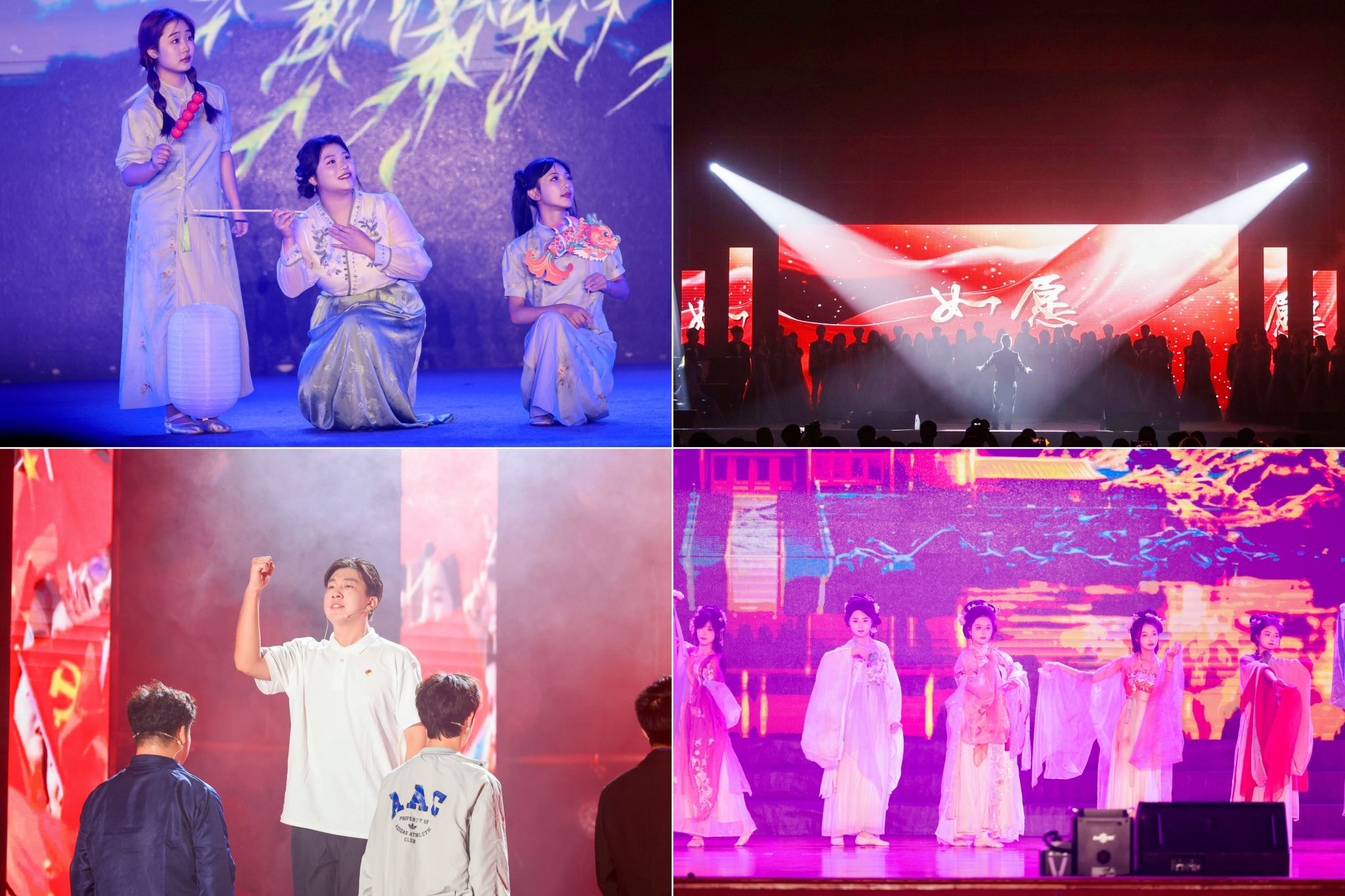 【本网讯】10月25日和27日,学校在航空港校区和龙泉校区分别举办了以“逐梦青春 共谱华章”为主题的庆祝中华人民共和国成立75周年暨2024年迎新生文艺晚会。学校党委书记沈火明,党委常委、副校长陈权亮,党委常委、党委组织部、党委统战部部长熊建,党委常委、党委宣传部部长张小红,相关职能部门、学院负责人,教师代表与2024级新生3000余人齐聚一堂观看晚会,近两万人在线观看晚会网络直播。