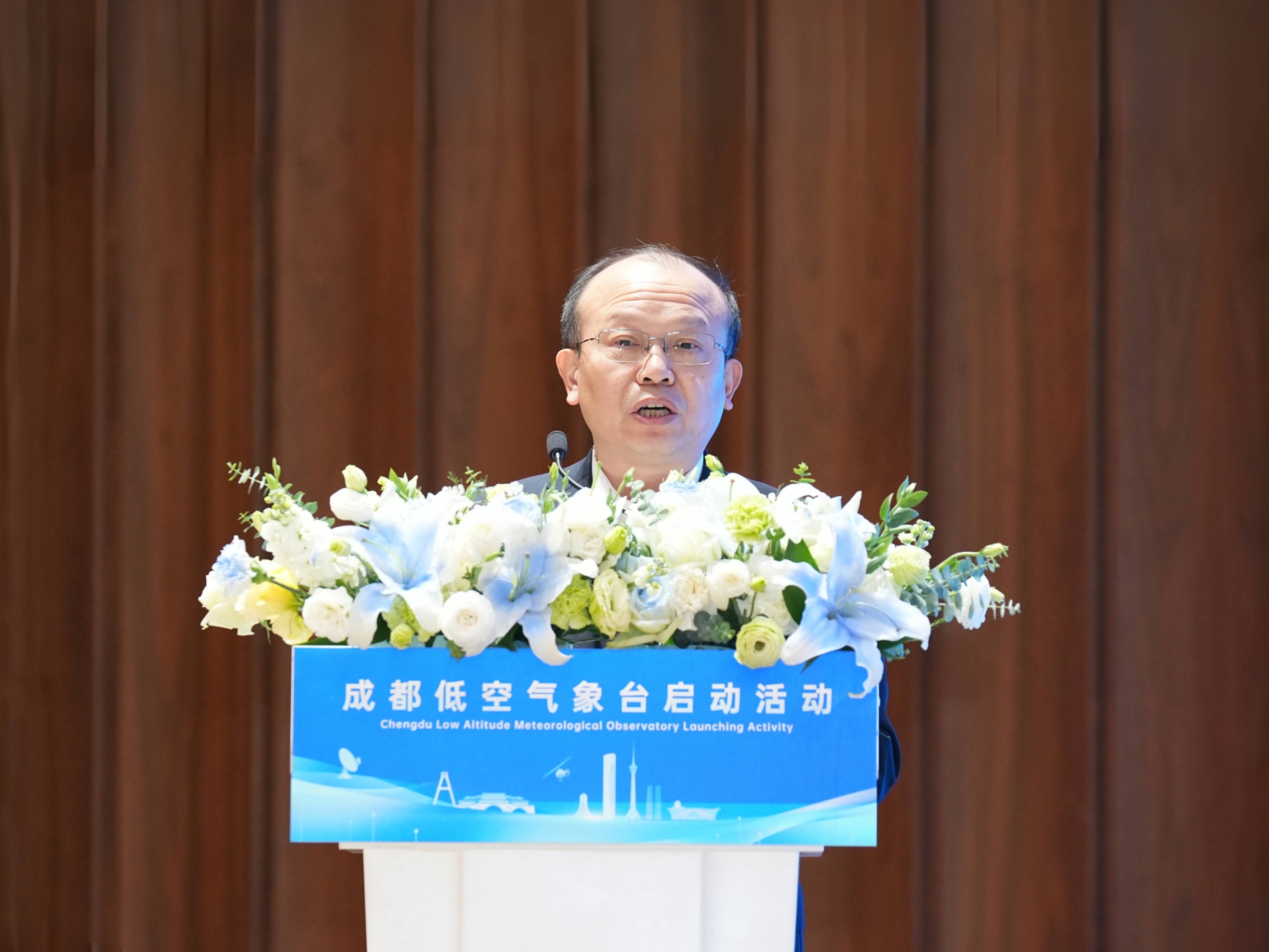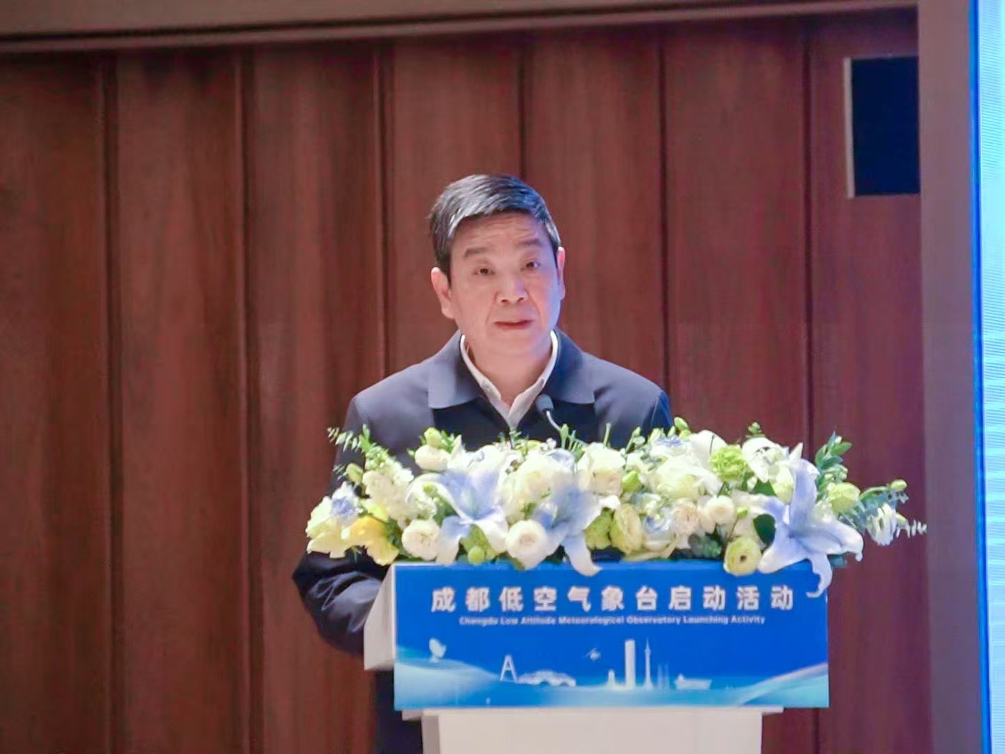 彭军在致辞中向成都市委、市政府及长期以来支持成都气象工作的各部门、单位表达诚挚感谢,并对成都低空气象台的正式启动致以热烈祝贺。他强调,低空经济的高质量发展离不开气象部门的坚实支撑与全面保障,而气象事业的高质量发展亦需低空经济的持续牵引与有力促进。他期望低空气象台能够不断强化业务转化能力,推出更多低空气象领域的创新成果,将其转化为气象新质生产力,提升影响力与号召力,将其塑造为全行业分享先进经验、展示创新成果、交流新技术的典范平台,为低空经济的高质量发展注入强劲动力。