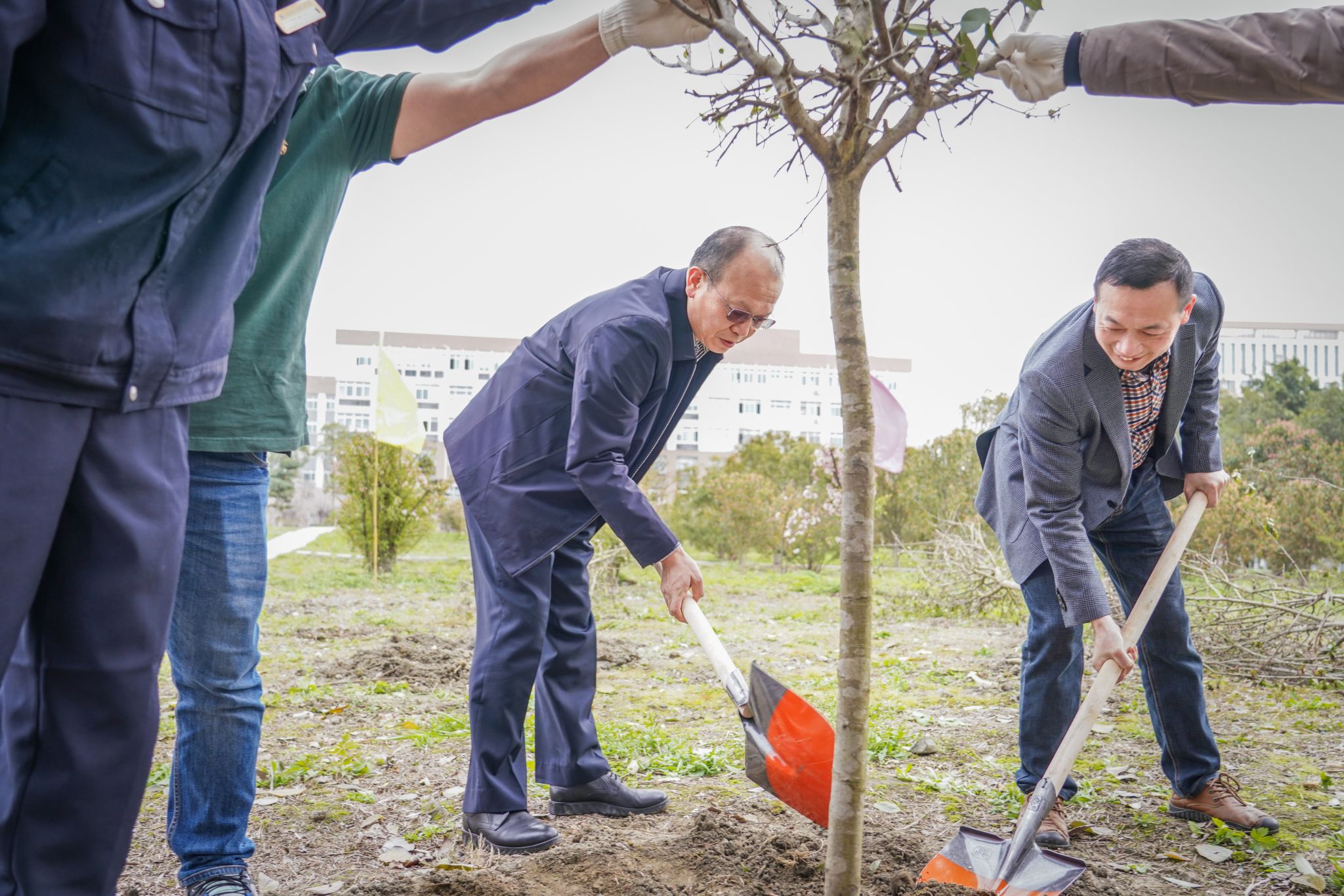 【本网讯】春回大地暖,植绿正当时。为深入贯彻落实习近平生态文明思想,助力“美丽校园”建设,营造“以树育人、以景润心”的校园文化氛围,3月12日,在第47个植树节来临之际,乐动在航空港校区信达楼北侧空地开展植树活动。学校党委书记沈火明,校长、党委副书记何建新,党委副书记杨奇才,党委常委、副校长陈权亮,党委常委、副校长何晋,党委常委、党委组织部部长、党委统战部部长熊建,党委常委、党委宣传部(新闻中心)部长(主任)、机关党委书记张小红以及学校党政办公室、后勤基建处、校团委等部门负责人参加活动。