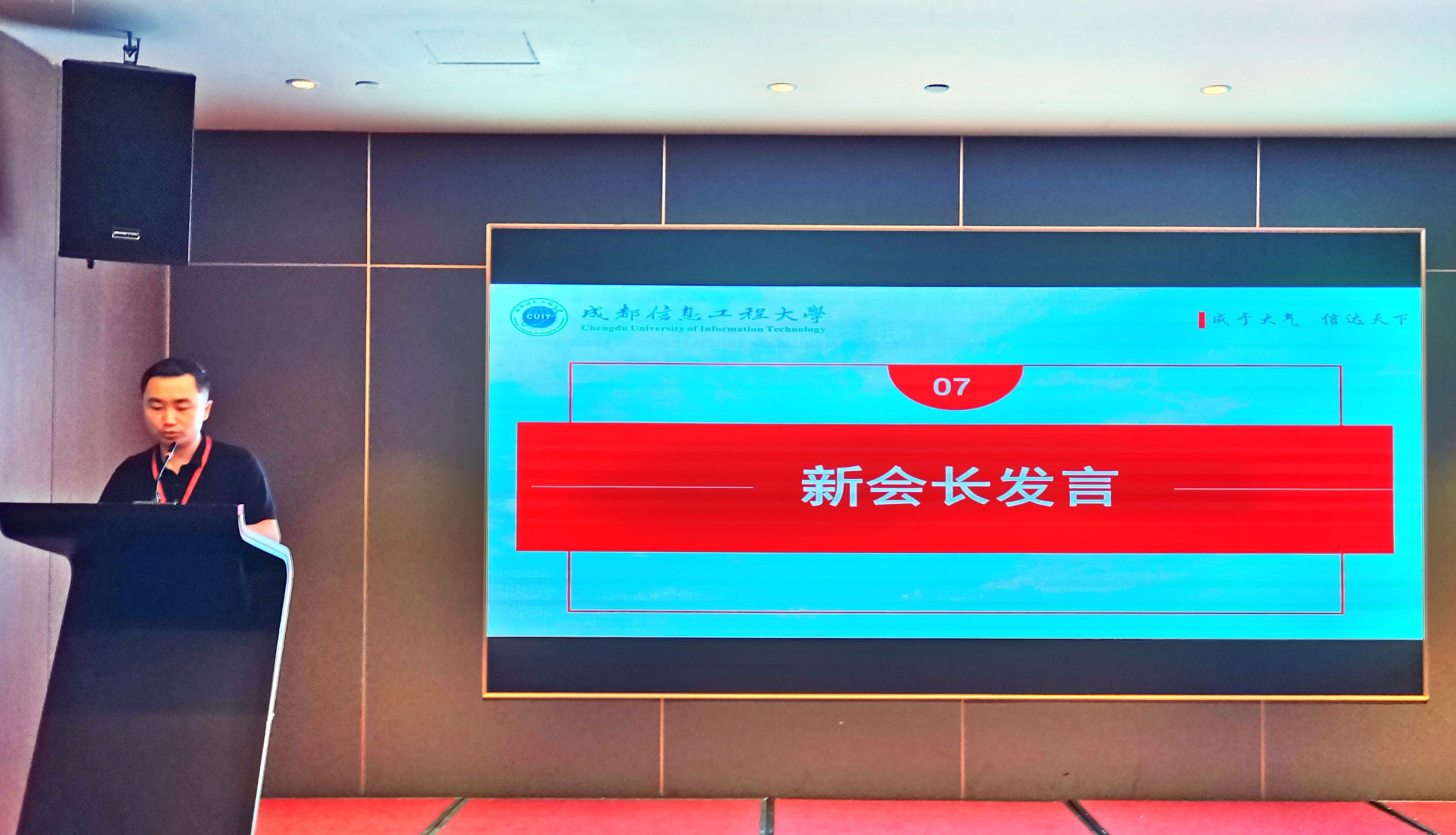 国内合作处(校友办公室)、科技处、大气科学学院、电子工程学院、统计学院、继续教育学院等部门负责人分别就学校校友会、基金会建设、科产教融合、学科建设、培训与社会服务等方面工作向大会作了专题报告。新华三集团代表邓彬彬、成都芯谷发展服务局合作部部长蔡一民分别介绍了集团发展和园区建设情况。