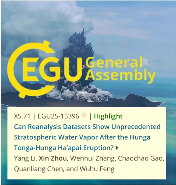 【本网讯】4月28日-5月2日,2025年欧洲地球科学联盟年会(EGU General Assembly 2025,EGU25)在奥地利维也纳举行。乐动大气科学学院关于汤加火山喷发后平流层水汽变化的研究成果,入选2025年年会亮点研究“EGU highlight”,是EGU25 Volcano-climate impacts and the stratospheric aerosol layer专题唯一入选亮点研究的成果。