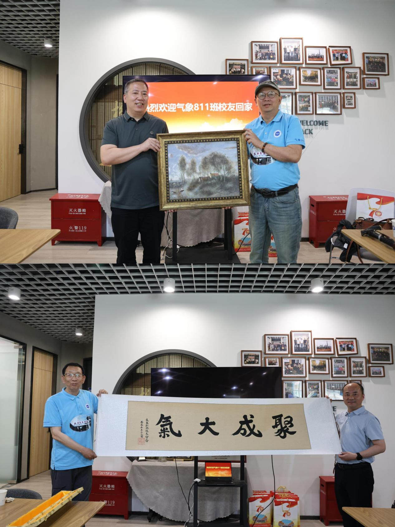 校友代表韩枫和高玉庄分别向校友会、大气科学学院赠送了自己的油画和书法作品。