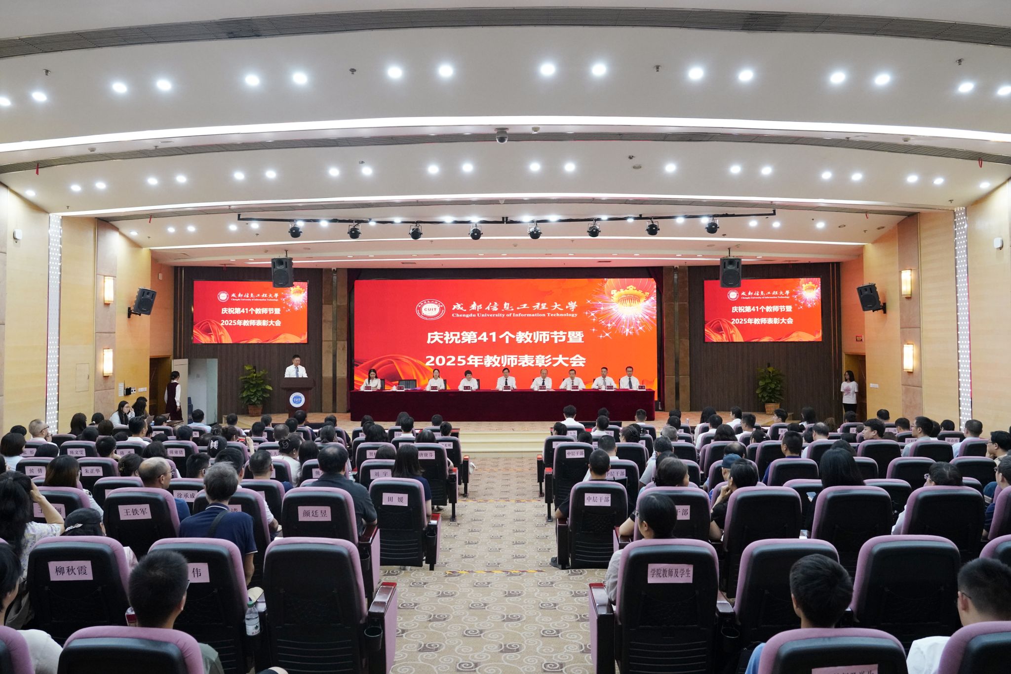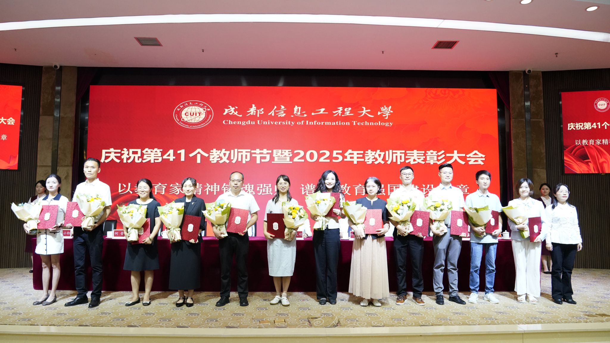 【本网讯】9月10日,学校庆祝第41个教师节暨2025年教师表彰大会在航空港校区国际会议厅举行。全体在校校领导,各二级党组织书记、各单位负责人、受表彰教师代表以及师生代表参加会议。大会由学校副校长何晋主持。