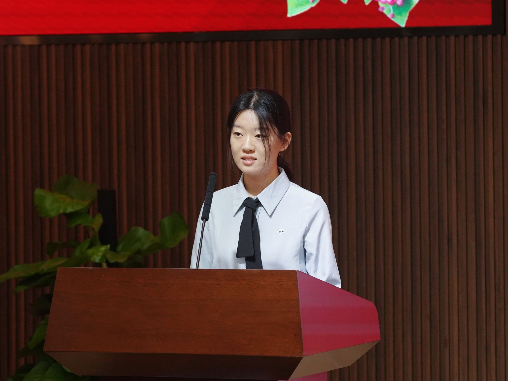 光电工程学院本科生赵奕涵作为学生代表发言。她代表全体成信学子向辛勤耕耘、无私奉献的全体老师致以诚挚的节日祝福和崇高的敬意。她表示将传承成信人“敢为人先”的精神,以诚信筑牢立身之本,求真务实、砥砺奋斗,以青春之我、奋斗之我,为科技自强和国家发展贡献青春力量。