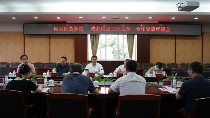 余敏明代表学校对向武一行来访表示热烈欢迎。他表示,学校与阿坝师范学院一直以来保持良好的合作交流关系,此次双方协同推进建设重大科研平台项目,对推动两校共同发展具有重要意义,将进一步带动人才培养和科学研究深化合作,更好地服务国家战略和地方经济社会发展。