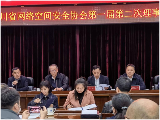 徐帆代表主管部门向理事会的举办表示热烈祝贺,向关心和支持四川省网信事业发展的各会员单位表示衷心的感谢。他说,协会成立一年多来,在省委网信办的领导下,在协会各位理事和会员单位的付出下,在成信大的大力支持下,协会党建工作引领发展,制度建设有序推进,赛事活动精心组织,行业服务初见成效,实现了初创之年的稳步开局。为了更好地推动协会高质量发展,他对协会发展提出了“立足四川,紧盯成渝,最终成为全国网安协会的排头兵”的希望,明确了“登高望远天地阔,纵横捭阖自从容”的发展方向。