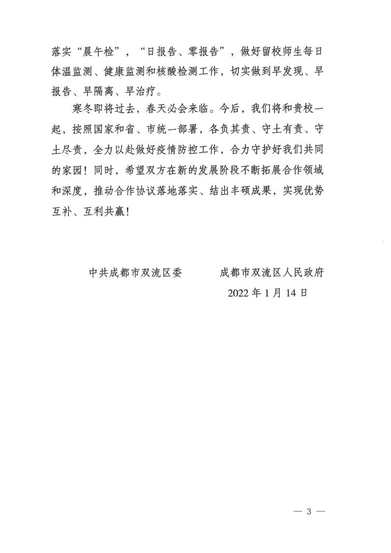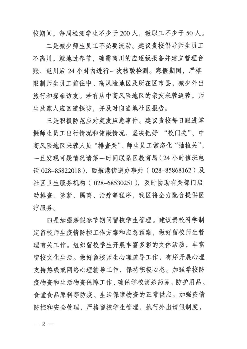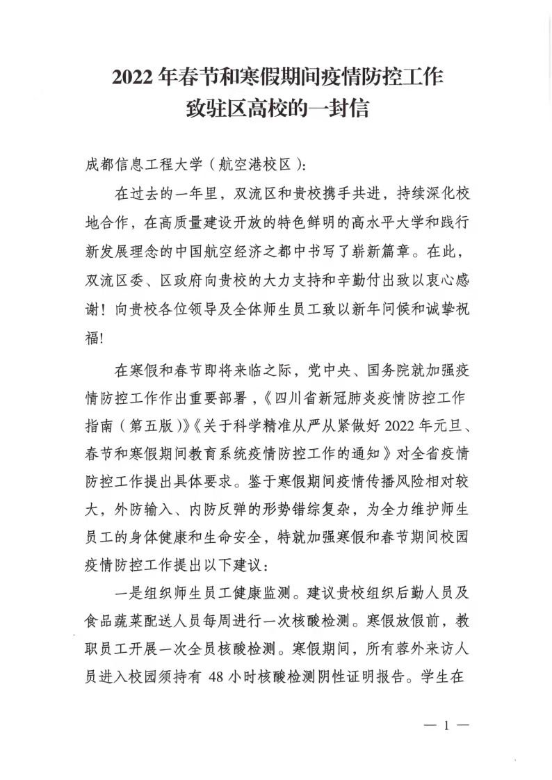 2022年春节和寒假期间疫情防控工作致驻区高校的一封信