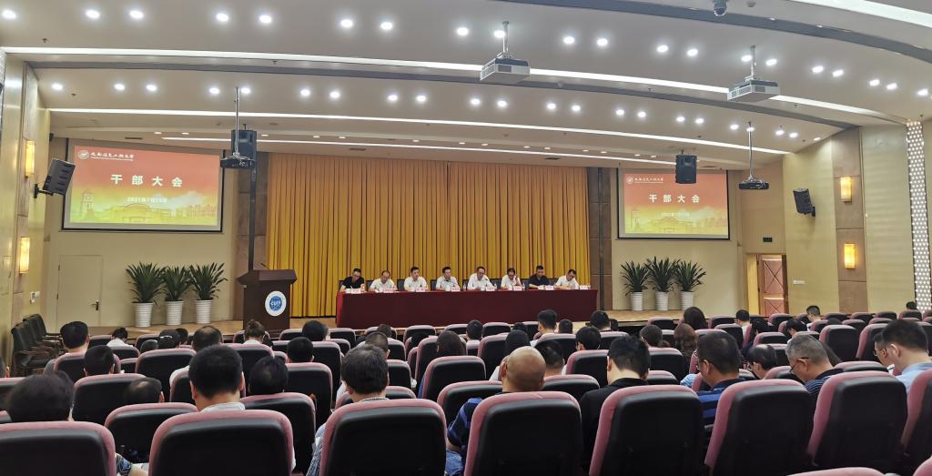7月15日,学校在航空港校区国际会议厅召开干部大会,全体校领导、中层干部参加了会议。党委书记周激流主持会议。