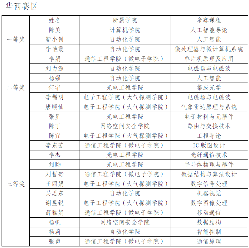 【本网讯】近日,第八届全国高等学校电子信息类专业青年教师授课竞赛预赛顺利结束。经过网络匿名评审,组委会复核审定,比赛结果于8月28日公示。乐动青年教师积极参赛提交作品,共23名教师获得省级奖项,一等奖3人、二等奖7人、三等奖13人。计算机学院陈美,自动化学院靳小钊、李艳霞、刘力源、杨强,通信工程学院(微电子学院)李娟晋级全国决赛。