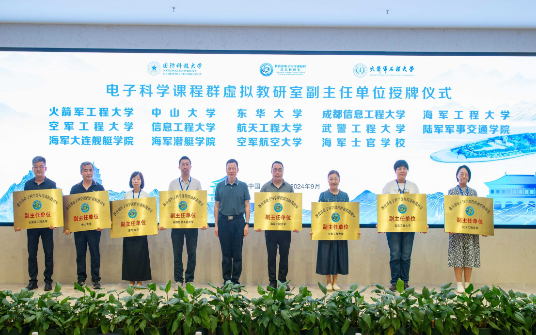 大会举行了电子科学课程群虚拟教研室副主任单位授牌仪式。乐动及火箭军工程大学、中山大学、东华大学等14所高校被授牌为副主任单位。该虚拟教研室以国防科技大学为主任单位,汇聚了来自全国全军30余所高水平单位的教学科研骨干力量,依托信息与通信工程等国家一流学科群,全面提升电子科学领域教学科研融合、创新水平。