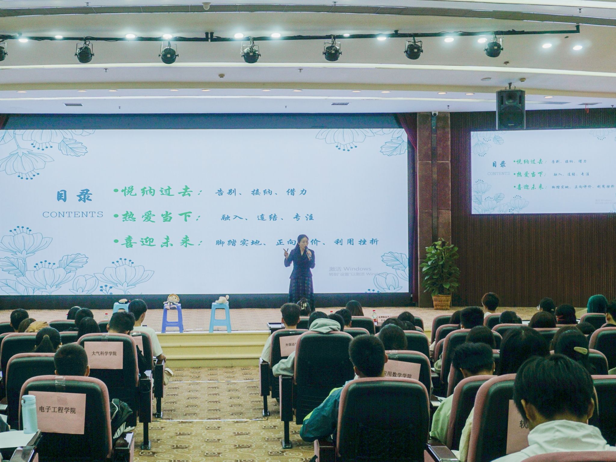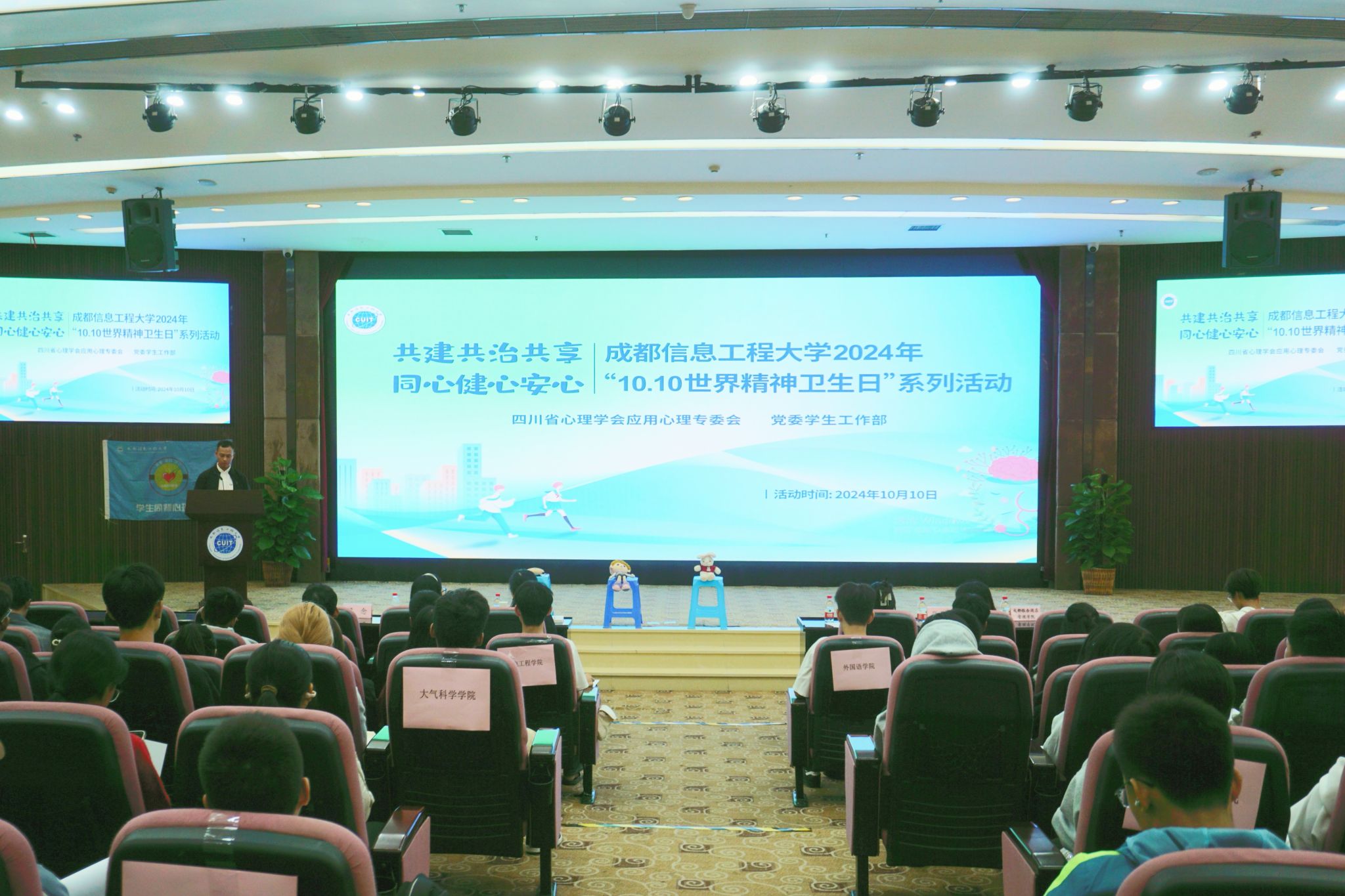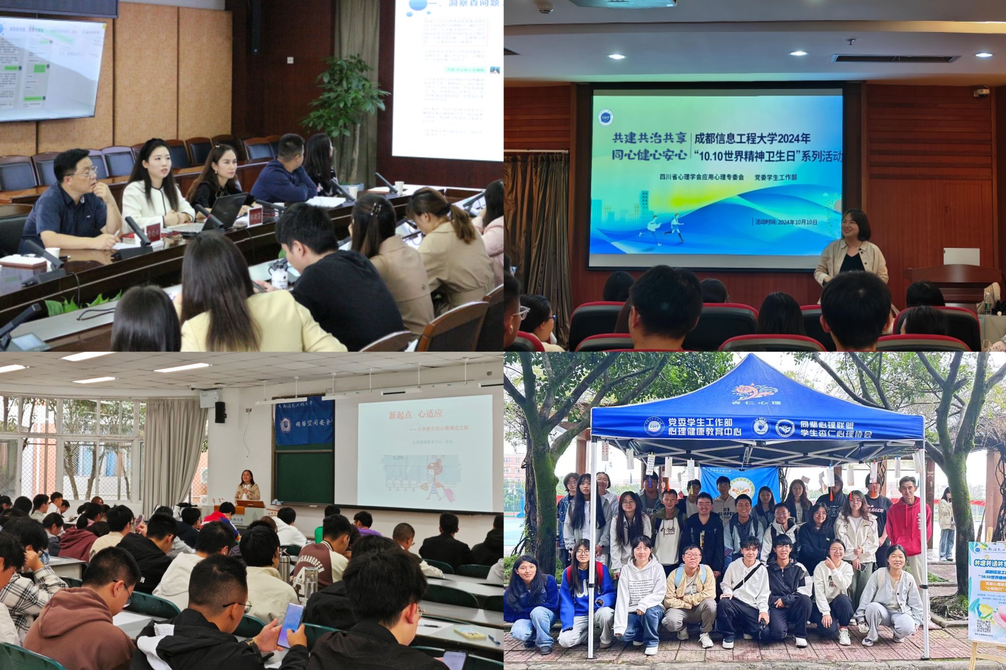 软件工程学院博雅心语名辅导员工作室负责人万娟、教师张澄及通信工程学院教师盛小芳开展了名为《光影里的幸福密码:一场心灵与灵魂的幸福之旅》的工作坊。心理健康教育中心教师孙光为网络空间安全学院作《新起点,心适应--大学新生的心理调适之旅》主题讲座。同时,同辈心理联盟和杏仁心理协会在两校区开展“心悦同行”心理科普小站活动。心理科普小站活动利用心理测试、互动游戏和精神卫生知识宣传,引导学生互相支持,共同成长,提升乐动学生的心理健康水平,营造和谐、积极的校园氛围。